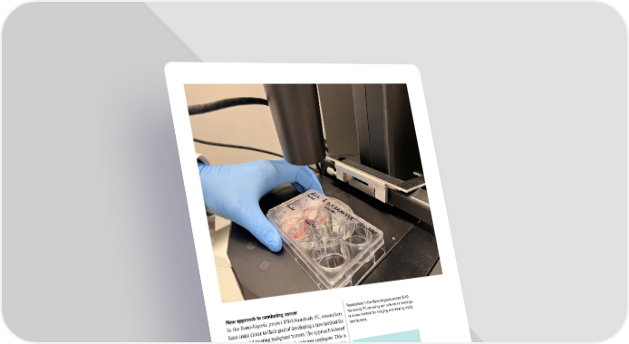 New approach to combating cancer Researchers in the Nano-Argovia project B7H3 In the Nano-Argovia project B7H3 Nanobody PC, researchers Nanobody PC are using cell cultures to investiga- have come closer to their goal of developing a new method for te a new method for imaging and treating malig- nant tumors. imaging and treating malignant tumors. The approach is based on the use of a so-called nanobody-polymer conjugate. This is a combination of a cell-speci昀椀c nanobody, which acts very sim- ilarly to antibodies but is much smaller and which binds spe- ci昀椀cally to certain cancer cells, and a polymer that can be loaded “Even though there is still a with di昀昀erent compounds. The nanobody-polymer conjugate long way to go: I am positive will be designed to cross the blood-brain barrier and then bind about the results regarding to the speci昀椀c target molecule on the surface of cells of malig- nanobody production and nant brain tumors. Depending on the active substance that is radioactive labeling, and we are bound to the nanobody-polymer conjugate, cancer cells in the looking forward to the 昀椀rst brain may be combated or imaged. A radioactively labeled na- coupling attempts with the nobody is currently in initial cell culture trials, and various test new polymer carriers.” polymers for conjugation have been developed. Dr. Christian Geraths, Cooperation with: CIS Pharma AG // FHNW School of Life CSO at CIS Pharma AG Science // Paul Scherrer Institute // University Children’s Hospital Zurich (without funding from the SNI) Project description: https://bit.ly/3lrxFGd 40 SNI Annual Report 2023