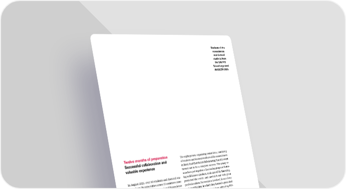 Students of the nanosciences and doctoral students from the SNI PhD School organized INASCON 2023. Twelve months of preparation The eight-person organizing committee, consisting Successful collaboration and of students and doctoral students of the nanosciences valuable experience in Basel, had their hands full ensuring that this event turned out to be a complete success. The young re- searchers put together a fascinating program featur- In August 2023, over 60 students and doctoral stu- ing well-known speakers, took care of the 昀椀nancing, dents from 26 universities across 15 countries came promoted the event, and carried it out with great together in Basel for the International Nanoscience professionalism. For everyone involved, it was a busy Student Conference (INASCON) 2023. Since its 昀椀rst and eventful time in which they learned a great deal outing in Silkeborg (Denmark) in 2007, this nano- — and helped to ensure that those attending INA- science conference has been held in eight di昀昀erent SCON left with memories of Basel as a livable city countries. In 2023, Basel hosted the conference for and an attractive research location. the third time. Article on INASCON in SNI INSight: https://bit.ly/48vy8uE In August 2023, over 60 students and doctoral students of the nanosciences from 15 countries came together in Basel for INASCON. (Image: P. Dani) SNI Annual Report 2023 13