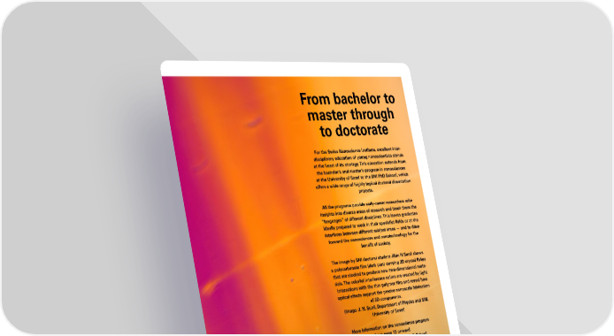 From bachelor to master through to doctorate For the Swiss Nanoscience Institute, excellent inter- disciplinary education of young nanoscientists stands at the heart of its strategy. This education extends from the bachelor’s and master’s program in nanosciences at the University of Basel to the SNI PhD School, which offers a wide range of highly topical doctoral dissertation projects. All the programs provide early-career researchers with insights into diverse areas of research and teach them the “languages” of different disciplines. This leaves graduates ideally prepared to work in their specialist fields or at the interfaces between different subject areas — and to drive forward the nanosciences and nanotechnology for the benefit of society. The image by SNI doctoral student Jibin N Sunil shows a polycarbonate film (dark part) carrying 2D crystal flakes that are stacked to produce new two-dimensional mate- rials. The colorful interference colors are created by light interactions with the thin polymer film and reveal how optical effects support the precise nanoscale fabrication of 2D components. (Image: J. N. Sunil, Department of Physics and SNI, University of Basel) More information on the nanoscience program from page 12 onward More information on the SNI PhD School from page 16 onward 11 SNI Annual Report 2025