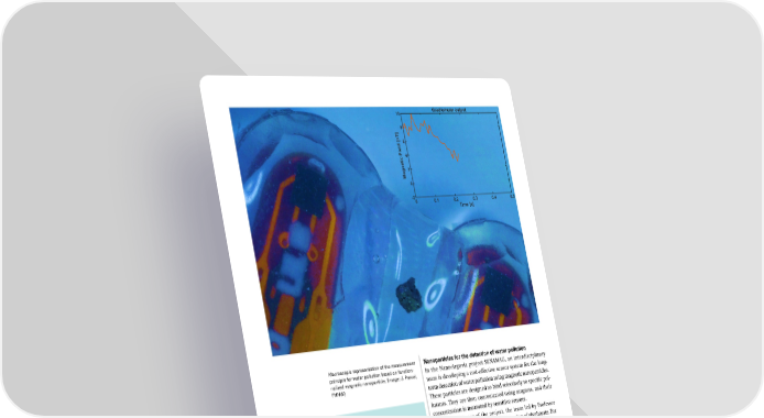 Nanoparticles for the detection of water pollution In the Nano-Argovia project SENAMAG, an interdisciplinary team is developing a cost-effective sensor system for the long- term detection of water pollution using magnetic nanoparticles. These particles are designed to bind selectively to specific pol- lutants. They are then concentrated using magnets, and their concentration is measured by sensitive sensors. In the first year of the project, the team led by Professor Joris Pascal (FHNW) focused on the detection of glyphosate. For this, they used nanoparticles functionalized with antibodies that were specific to the pollutant. This specificity will need to be further optimized in the second year. In addition, the re- searchers have identified a specially coated glass surface that can store the particles prior to use. They have developed a spe- cial source of power for magnetic manipulation of the particles, as well as promising sensor technologies. Initial tests have suc- cessfully demonstrated the detection of small quantities of nanoparticles and proved that the proposed concept is not only technically feasible but also offers considerable potential for an efficient new form of water quality monitoring. Collaboration between: FHNW School of Life Sciences // FHNW School of Engineering and Environment // Mems AG (Birmenstorf) Project description: https://bit.ly/3P2bHZ6 Macroscopic representation of the measurement principle for water pollution based on function- nalized magnetic nanoparticle. (Image: J. Pascal, FHNW) “The new measuring technique proposed in the SENAMAG project is a promising approach as it combines miniaturization, low manufacturing costs and high performance.” Dr. Daniel Matter, Mems AG 41 SNI Annual Report 2025