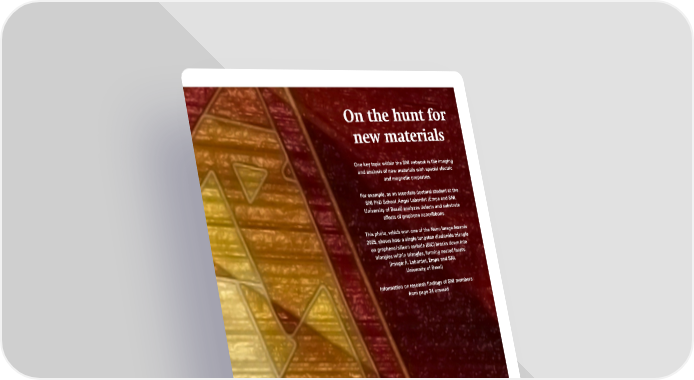 On the hunt for new materials One key topic within the SNI network is the imaging and analysis of new materials with special electric and magnetic properties. For example, as an associate doctoral student at the SNI PhD School, Ángel Labordet (Empa and SNI, University of Basel) analyzes defects and substrate effects of graphene nanoribbons. This photo, which won one of the Nano Image Awards 2025, shows how a single tungsten diselenide triangle on graphene/silicon carbide (SiC) breaks down into triangles within triangles, forming nested facets. (Image: Á. Labordet, Empa and SNI, University of Basel) Information on research findings of SNI members from page 24 onward 23 SNI Annual Report 2025