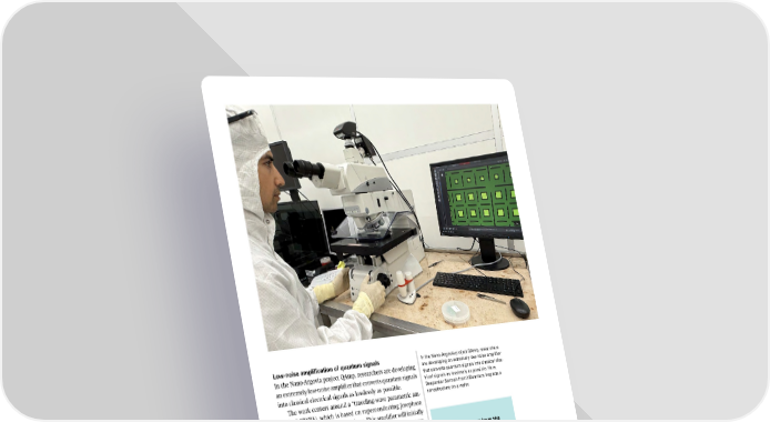Low-noise amplification of quantum signals In the Nano-Argovia project QAmp, researchers are developing an extremely low-noise amplifier that converts quantum signals into classical electrical signals as losslessly as possible. The work centers around a “traveling-wave parametric am- plifier” (TWPA), which is based on superconducting Josephson junctions (JJs) and planar capacitors. This amplifier will initially be used to read spin qubits and superconducting qubits in quan- tum processors but will also have future applications in quan- tum sensors and imaging. The team led by Professor Andrea Hofmann and Professor Christian Schönenberger (both of the University of Basel) is de- veloping the TWPA with a completely planar, two-dimensional geometry and a small number of manufacturing steps. For the substrate, the researchers use highly pure, undoped silicon with a superconducting coating of tantalum metal. Tests with reso- nators reveal excellent agreement with designs as well as high quality factors, which indicate low losses. In addition, the sci- entists have established a reliable process for superconducting bridges with a view to clean grounding. In the next step, they plan to further optimize Josephson junctions and incorporate them into a complete TWPA. Collaboration between: University of Basel // Paul Scherrer Institute PSI // YQuantum (Villigen) Project description: https://bit.ly/4qQPSsJ “With support from the Nano-Argovia project, we’ve been able to achieve significant advances in the development of a novel quantum amplifier by working hand in hand with strong partners from the University of Basel and PSI. This promising system is well on the way to becoming a vital product in our portfolio.” Dr. Christian Jünger, YQuantum In the Nano-Argovia project QAmp, researchers are developing an extremely low-noise amplifier that converts quantum signals into classical elec- trical signals as losslessly as possible. Here, Deepankar Sarmah from YQuantum inspects a nanostructure on a wafer. 42 SNI Annual Report 2025