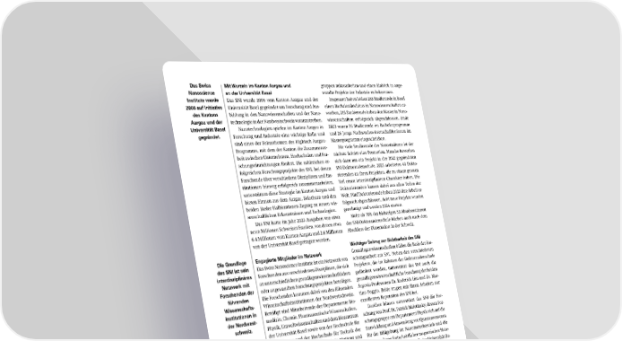 Das Swiss Mit Wurzeln im Kanton Aargau und gruppen mitzuarbeiten und einen Einblick in ange- Nanoscience an der Universität Basel wandte Projekte der Industrie zu bekommen. Institute wurde Das SNI wurde 2006 vom Kanton Aargau und der Insgesamt haben bisher 285 Studierende in Basel 2006 auf Initiative Universität Basel gegründet um Forschung und Aus- einen Bachelorabschluss in Nanowissenschaften er- des Kantons bildung in den Nanowissenschaften und der Nano- worben, 216 Studierende haben den Master in Nano- Aargau und der technologie in der Nordwestschweiz voranzutreiben. wissenschaften erfolgreich abgeschlossen. Ende Universität Basel Nanotechnologien spielen im Kanton Aargau in 2023 waren 56 Studierende im Bachelorprogramm gegründet. Forschung und Industrie eine wichtige Rolle und und 26 junge Nachwuchswissenschaftler:innen im sind eines der Fokusthemen des Hightech Aargau- Masterprogramm eingeschrieben. Programms, mit dem der Kanton die Zusammenar- Für viele Studierende des Nanostudiums ist der beit zwischen Unternehmen, Hochschulen und For- nächste Schritt eine Promotion. Manche bewerben schungseinrichtungen fördert. Die zahlreichen er- sich dazu um ein Projekt in der 2012 gegründeten folgreichen Forschungsprojekte des SNI, bei denen SNI-Doktorandenschule. 2023 arbeiteten 40 Dokto- Forschende über verschiedene Disziplinen und Ins- rierenden an ihren Projekten, die zu einem grossen titutionen hinweg erfolgreich zusammenarbeiten, Teil einen interdisziplinären Charakter haben. Die unterstützen diese Strategie im Kanton Aargau und Doktorierenden kamen dabei aus allen Teilen der bieten Firmen aus dem Aargau, Solothurn und den Welt. Fünf Doktorierende haben 2023 ihre Arbeit er- beiden Basler Halbkantonen Zugang zu neuen wis- folgreich abgeschlossen. Acht neue Projekte wurden senschaftlichen Erkenntnissen und Technologien. genehmigt und werden 2024 starten. Das SNI hatte im Jahr 2023 Ausgaben von etwa Mehr als 70% der bisherigen 53 Absolvent:innen neun Millionen Schweizer Franken, von denen etwa der SNI-Doktorandenschule blieben auch nach dem 6.4 Millionen vom Kanton Aargau und 2.6 Millionen Abschluss der Dissertation in der Schweiz. von der Universität Basel getragen wurden. Wichtiger Beitrag zur Sichtbarkeit des SNI Die Grundlage Engagierte Mitglieder im Netzwerk Grundlagenwissenschaften bilden die Basis der For- des SNI ist sein Das Swiss Nanoscience Institute ist ein Netzwerk von schungsarbeit am SNI. Neben den verschiedenen interdisziplinäres Forschenden aus verschiedenen Disziplinen, die sich Projekten, die im Rahmen der Doktorandenschule Netzwerk mit an unterschiedlichen grundlagenwissenschaftlichen gefördert werden, unterstützt das SNI auch die Forschenden der oder angewandten Forschungsprojekten beteiligen. grundlagenwissenschaftliche Forschung der beiden führenden Die Forschenden kommen dabei von den führenden Argovia-Professoren Dr. Roderick Lim und Dr. Mar- Wissenschafts Wissenschaftsinstitutionen der Nordwestschweiz. tino Poggio. Beide tragen mit ihren Arbeiten zur institutionen in Beteiligt sind Mitarbeitende der Departemente Bio- exzellenten Reputation des SNI bei. der Nordwest medizin, Chemie, Pharmazeutische Wissenschaften, Darüber hinaus unterstützt das SNI die For- schweiz. Physik, Umweltwissenschaften und dem Biozentrum schung von Prof. Dr. Patrick Maletinsky, dessen For- der Universität Basel sowie von der Hochschule für schungsgruppe am Departement Physik sich auf die Life Sciences und der Hochschule für Technik der Entwicklung und Anwendung von Quantensensoren Fachhochschule Nordwestschweiz in Muttenz und für die Bildgebung im Nanometerbereich und die Windisch, vom Paul Scherrer Institut, dem Departe- Untersuchung fortschrittlicher magnetischer Mate- ment Biosysteme der ETH Zürich in Basel, dem Cen- rialien konzentriert. Ausserhalb der Universität Ba- tre Suisse d’Electronique et de Microtechnique sel unterstützt das SNI drei Titularprofessoren: Dr. (CSEM) in Allschwil und den beiden Technologie- Thomas Jung, Dr. Michel Kenzelmann und Dr. Frith- transferzentren ANAXAM und Swiss PIC. Im Bereich jof Nolting, die einen Lehrauftrag am Departement des Wissens- und Technologietransfers arbeitet das Physik der Universität Basel haben und mit ihren SNI ebenfalls mit dem Hightech Zentrum Aargau in Forschungsgruppen am PSI tätig sind. Brugg sowie mit Basel Area Business & Innovation zusammen. Austausch mit Industrieunternehmen Das SNI unterstützt den Transfer von wissenschaftli- Das SNI bildet Nachwuchs mit breiter Wissensbasis chen Erkenntnissen und Technologien in die Indust- exzellente Nach Vor zwanzig Jahren hat die Vorläuferinstitution des rie durch das Nano-Argovia-Programm. Seit seiner wuchsforschende SNI den Bachelor- und Masterstudiengang «Nanowis- Gründung hat das SNI mehr als 100 Projekte in Zu- aus, die bestens senschaften» an der Universität Basel etabliert. Die sammenarbeit von Firmen und Forschungsinstitutio- geeignet sind um Studierenden bekommen im Bachelorstudium zu- nen aus der Nordwestschweiz in diesem erfolgreichen an Schnittstellen nächst eine umfassende Grundausbildung in Biolo- Programm gefördert. 2023 wurden insgesamt neun verschiedener gie, Chemie, Physik und Mathematik. Im Laufe des dieser angewandten Forschungsprojekte unterstützt. Disziplinen zu anspruchsvollen Studiums können sie dann mehr Vier der Partner昀椀rmen kam dabei aus dem Kanton arbeiten. und mehr eine Fachrichtung einschlagen, die den Aargau, fünf aus einem der beiden Basler Halbkan- persönlichen Interessen entspricht. tone. Die Zusammenarbeit mit der Industrie wird Schon früh in der Ausbildung erhalten die Studie- auch durch die beiden Technologietransferzentren renden die Möglichkeit in verschiedenen Forschungs- ANAXAM und Swiss PIC gefördert. 10 SNI-Jahresbericht 2023