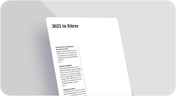 2023 in Kürze Erster Abschluss in Medizinische Nanowissenschaften Philippe Van der Stappen hat als erster Nanostudierender seinen Master in der neu angebotenen Vertiefungsrichtung «Medizinische Nanowissenschaften» ab- geschlossen. Seite 14 Erfolgreiche INASCON Studierende und Doktorierende der Nanowissenschaften haben im Sommer 2023 die Konferenz INASCON in Basel organisiert. Das vielfältige Programm hat die Teilnehmenden aus 15 Ländern begeistert und dafür gesorgt, dass ih- nen Basel als spannender Forschungs- standort in Erinnerung bleibt. Seite 13 Vielfältige Forschung Fünf SNI-Doktorierende haben 2023 ihre Doktorarbeiten abgeschlossen. Sie haben dazu an den Departementen Biozentrum, Chemie, pharmazeutische Wissenschaf- ten und Physik gearbeitet. Ein assoziier- ter Doktorand war an der Empa tätig. Seite 16 Zehnjähriges Jubliäum Im neuen Rein Frauen in den Nanowissenschaften Im Jahr 2013 haben die ersten Doktorie- raum des Nano Sie studieren, sitzen an ihrer Doktorarbeit, forschen, lehren renden ihre Arbeiten an der SNI-Dokto- Fabrication Labs, oder führen Forschungsgruppen. Die Vielfalt der Frauen, die randenschule begonnen. Das SNI-Team der Ende 2023 in sich für Nanowissenschaften und ihre unterschiedlichen Aufga- lud daher im Sommer 2023 zu einer Ju- Betrieb genom ben begeistern, ist gross. Wir portraitieren einige der zum SNI biläumsfeier ein, zu der sich zahlreiche men wurde, be昀椀n gehörenden Frauen und möchten auf diese Weise Mädchen aktuelle und ehemalige Doktorierende det sich auch ein und junge Frauen zu einer Karriere in den Naturwissenschaften sowie Projektleitende zu einem lockeren animieren. neues Elektronen Austausch trafen. strahllithogra昀椀e Seite 57 Seite 21 System. Neuer Reinraum in Betrieb Vielfältiges Angebot Das Nano Fabrication Lab des SNI konnte Ende 2023 einen an- Im Jahr 2023 gab es zahlreiche Gelegen- gemieteten Reinraum im Neubau des Departements Biosys- heiten mehr über das SNI und Nanowis- teme der ETH Zürich in Basel in Betrieb nehmen. Das inzwi- senschaften zu erfahren – im Zug, auf schen auf vier Mitarbeitende angewachsene Team ist nun noch dem Rüeblimärt, an Schulen, bei Wissen- besser in der Lage Aufträge im Bereich der Mikro- und Nanofa- schaftsfestivals oder auf unserer neuen brikation zu bearbeiten. Webseite und den Social Media-Kanälen. Seite 49 Seite 56 4 SNI-Jahresbericht 2023