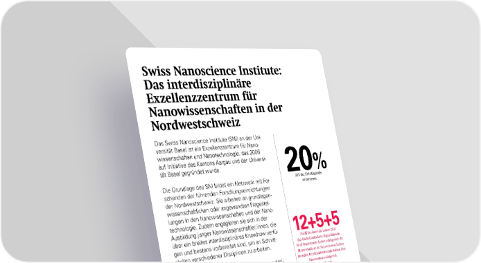 Swiss Nanoscience Institute: Das inter disziplinäre Exzellenzzentrum für Nanowissenschaften in der Nordwestschweiz Das Swiss Nanoscience Institute (SNI) an der Uni- versität Basel ist ein Exzellenzzentrum für Nano- wissenschaften und Nanotechnologie, das 2006 auf Initiative des Kantons Aargau und der Universi- tät Basel gegründet wurde. 20% Die Grundlage des SNI bildet ein Netzwerk mit For- 20% der SNI-Mitglieder schenden der führenden Forschungseinrichtungen sind Frauen. der Nordwestschweiz. Sie arbeiten an grundlagen - wissenschaftlichen oder angewandten Fragestel- lungen in den Nanowissenschaften und der Nano- technologie. Zudem engagieren sie sich in der Ausbildung junger Nanowissenschaftler:innen, die 12+5+5 über ein breites interdisziplinäres Knowhow verfü - gen und bestens vorbereitet sind, um an Schnitt- Zwölf Studierende haben 2023 stellen verschiedener Disziplinen zu arbeiten. das Bachelorstudium abgeschlossen, Fünf Studierende haben erfolg reich ihr Masterstudium in Nano wissenschaften Um diese interdisziplinäre Ausbildung voranzutrei- beendet. Fünf Doktorierende haben ihre ben, koordiniert das SNI das schweizweit einzigar- Dissertation erfolgreich abgeschlossen. tige Studium der Nanowissenschaften an der Uni- versität Basel, das Studierende mit einem Bachelor und einem Master in Nanowissenschaf- ten abschliessen können. Zudem betreibt das SNI eine Doktorandenschule, die interessierte Nach- wuchsforschende aus der ganzen Welt anzieht. Die Ausbildung und Forschung unterstützt auch das 40 Nano Technology Center des SNI, zu dem die bei - den Serviceeinheiten Nano Imaging Lab und Nano Im Jahr 2023 gehörten 40 Doktorierende Fabrication Lab gehören. Die insgesamt 10 Mitar zur SNI-Doktorandenschule. - beitenden stehen Kund:innen von Hochschulen und Firmen zur Verfügung, um deren Forschung im Bereich der Abbildung und Analyse sowie der Nano- und Mikrofabrikation zu unterstützen. 8 SNI-Jahresbericht 2023