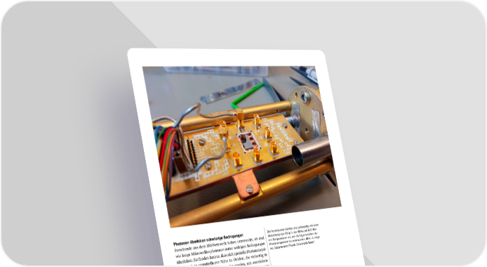 Photonen überleben schwierige Bedingungen Die Forschenden kühlten die Leiterplatte mit einer Forschende aus dem SNI-Netzwerk haben untersucht, ob und Halbleiterprobe (Chip in der Mitte) auf Milli-Kel- wie lange Mikrowellenphotonen unter widrigen Bedingungen vin-Temperaturen ab, um die Eigenschaften der Photonenspeicher zu untersuchen. (Bild: J. Unge- überleben. Sie fanden heraus, dass sich spezielle Photonenspei- rer, Departement Physik, Universität Basel) cher auch in unmittelbarer Nähe zu Oxiden, die vielseitig in der Halbleitertechnologie verwendet werden, mit ausreichen- der Güte herstellen lassen. Die Photonenspeicher, sogenannte Resonatoren, können somit als Sensoren für Quantene昀昀ekte in Halbleiterstrukturen eingesetzt werden. Originalpublikation: https://doi.org/10.1140/epjqt/s40507023001996 30 SNI-Jahresbericht 2023