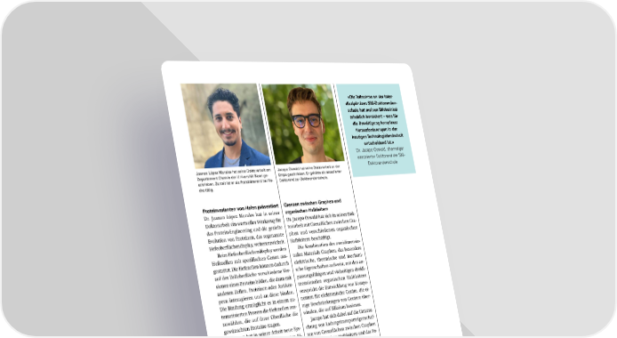 «Die Teilnahme an der inter disziplinären SNIDoktoranden schule hat meinen Blickwinkel erheblich bereichert – was für die Bewältigung komplexer Herausforderungen in der heutigen Technologielandschaft entscheidend ist.» Dr. Jacopo Oswald, ehemaliger assoziierter Doktorand der SNI- Joanan López Morales hat seine Doktorarbeit am Jacopo Oswald hat seine Doktorarbeit an der Doktorandenschule Departement Chemie der Universität Basel ge- Empa geschrieben. Er gehörte als assoziierter schrieben. Zurzeit ist er als Postdoktorand bei Ro- Doktorand zur Doktorandenschule. che tätig. Proteinvarianten von Hefen präsentiert Grenzen zwischen Graphen und Dr. Joanan López Morales hat in seiner organischen Halbleitern Doktorarbeit ein wertvolles Werkzeug für Dr. Jacopo Oswald hat sich in seiner Dok- das Protein-Engineering und die gezielte torarbeit mit Grenz昀氀ächen zwischen Gra- Evolution von Proteinen, das sogenannte phen und verschiedenen organischen Hefeober昀氀ächendisplay, weiterentwickelt. Halbleitern beschäftigt. Beim Hefeober昀氀ächendisplay werden Die Kombination des zweidimensio- Hefezellen mit spezi昀椀schen Genen aus- nalen Materials Graphen, das besondere gestattet. Die Hefezellen können dadurch elektrische, thermische und mechani- auf der Zellober昀氀äche verschiedene Ver- sche Eigenschaften aufweist, mit den an- sionen eines Proteins bilden, die dann mit passungsfähigen und vielseitigen dreidi- anderen Zellen, Proteinen oder Antikör- mensionalen organischen Halbleitern pern interagieren und an diese binden. verspricht die Entwicklung von Kompo- Die Bindung ermöglicht es in einem au- nenten für elektronische Geräte, die ei- tomatisierten Prozess die Hefezellen aus- nige Beschränkungen von Geräten über- zuwählen, die auf ihrer Ober昀氀äche die winden, die auf Silizium basieren. gewünschten Proteine tragen. Jacopo hat sich dabei auf die Untersu- Joanan hat in seiner Arbeit neue Sys- chung von Ladungstransporteigenschaf- teme und Proteine mit verbesserten Ei- ten von Grenz昀氀ächen zwischen Graphen genschaften entwickelt, die das Hefeober- und organischen Halbleitern und das Po- 昀氀ächendisplay als zentrale Technologie- tenzial für die Integration in Bauelemente plattform nutzen und die Bandbreite der fokussiert. Er hat dazu zunächst Graphen Anwendungen in der Biotechnologie, auf Kupferfolien gezüchtet und anschlie- Biochemie und im klinischen Bereich er- ssend mithilfe der Nassübertragungstech- weitern. Er hat sich beispielsweise auf nik die Graphenschichten auf Silizium einen serologischen Immunoassay zum und unterschiedliche organische Materi- Nachweis von Anti-SARS-CoV-2-Immun- alien übertragen. Anhand von Rasterkraft- globulinen in Humanseren fokussiert. In mikroskopie, Raman-Spektroskopie und einem anderen Teil der Arbeit hat er ein elektrischer Charakterisierung konnte er neues Hefeoberflächendisplay-System dann zeigen, wie organische Moleküle mit entwickelt, bei dem sich die Kopienzahl den elektronischen Eigenschaften von von Proteinen auf den Hefezellen mit- Graphen interagieren und diese beein昀氀us- hilfe eines genetischen Schaltkreises ein- sen. Dabei hat er sowohl die Auswirkun- stellen lässt – eine lang ersehnte Verbes- gen der Moleküle auf den Ladungstrans- serung, die den Einsatz im Hochdurch- port in der Graphenschicht als auch die satz-Screening unterstützt. Zudem hat temperaturabhängige Ladungsträgerin- Joanan eine Strategie für neue Bindungs- jektion in den vertikalen Heterostruktu- funktionen entwickelt und ein Nicht-An- ren berücksichtigt. tikörper-Gerüst mit verbesserten mecha- Publikation: https://bit.ly/41xs4zl nischen Eigenschaften für Immunthera- pien gescha昀昀en. Publikation: https://bit.ly/3GR6lbV 18 SNI-Jahresbericht 2023