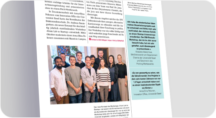SNI StartupWorkshop «From Lab to Startup» Doktorierende der SNI-Doktorandenschule Inhaber eines Beratungsunternehmens, arbeiten meist an grundlagenwissenschaft- die erste Ausgabe dieses Angebots. Sie lichen Themen, doch der Weg zu innova- vermittelte neben theoretischem Wissen tiven Anwendungen ist oft nicht weit. auch praktische Erfahrungen. Zwei er- Mitte Oktober erhielten sieben SNI-Dokto- folgreiche Gründer teilten ihre Einsich- rierende beim Workshop «From Lab to ten, und die Teilnehmenden erarbeiteten Startup» Einblicke in die Welt der Start-up- eigene Startup-Konzepte – meist basie- Gründung. Unter Anleitung von Expert: rend auf der eigenen Forschung. Den bes- Beim Startup-Workshop überzeugte innen entwickelten sie Geschäftsideen, ten Pitch präsentierte Elizaveta Maksi- Elizaveta Maksimova die Jury mit ihrer lernten wichtige Schritte für die Unter- mova aus dem Team von Prof. Dr. Jona- klaren Präsentation und gewann den Preis für den besten Pitch. nehmensgründung und präsentierten than de Roo (Departement Chemie), die diese in einem Pitch-Wettbewerb. die Jury mit ihrer klaren Darstellung In Zusammenarbeit mit Anna-Elina überzeugte. Pekonen vom Innovation OfÏce der Uni- Mit diesem Angebot möchte das SNI «Ich habe die akademischen Ideen versität Basel hatte der Koordinator der Doktorierende dazu anregen, alternative meines Dissertationsprojekts wei Doktorandenschule, Dr. Andreas Baum- Karrierewege zu erkunden und die An- ter entwickelt und fühlte mich sehr gartner, ein neues Konzept für den künf- wendbarkeit ihrer Forschung zu prüfen. wohl dabei, den nächsten Schritt tig jährlich stattfindenden Workshop Der Workshop war ein voller Erfolg und zu einem StartupUnternehmen «From Lab to Startup» entwickelt. Mitte wird weiterhin junge Forschende auf ih- anzudenken. Der SNIRhetorik Oktober moderierte dann Anna-Elina Pe- rem Weg unterstützen. Workshop, den ich im Jahr zuvor konen zusammen mit Mauricio Campos, Artikel in SNI INSight: https://bit.ly/3DNnPaR besucht habe, hat mir sehr geholfen, auch überzeugend zu präsentieren.» Elizaveta Maksimova, SNI-Doktorandin am Departement Chemie der Universität Basel und Gewinnerin des Pitching-Wettbewerbs «Es war grossartig zu sehen, wie die Teilnehmenden ihre Projekte in dem sehr kurzen Zeitraum von nur 1,5 Tagen entwickelt haben und zu einem beeindruckenden Ergeb nis führten.» Anna-Elina Pekonen, Innovation Office, Universität Basel Das neue Konzept des Workshops «From Lab to Startup» hat sowohl die Teilnehmenden wie auch die Kursleitenden überzeugt. Von nun an wird der Workshop jedes Jahr für eine Gruppe SNI-Doko- rierender angeboten, sodass alle Mitglieder der SNI-Doktorandenschule einmal während ihres Doktorats diesen wertvollen Einblick in die Welt der Firmengründung erfahren werden. (Bild: A. Baumgartner, SNI, Universität Basel) SNI-Jahresbericht 2024 21