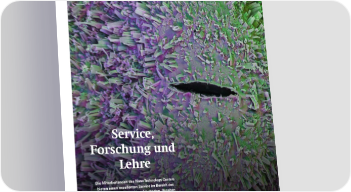 Service, Forschung und Lehre Die Mitarbeitenden des Nano Technology Centers bieten einen exzellenten Service im Bereich des Nanoimaging und der Nanofabrikation. Daneben sind sie an Forschungsprojekten beteiligt und bilden junge Nachwuchswissenschaftler:innen aus. Dieses Bild von der Oberfläche des Federkohls entstand im Rahmen eines Blockkurses für Studierende der Nanowissenschaften. Natalie Walser hat es für den Nano Image Award Wettbewerb 2024 eingereicht. 48 SNI-Jahresbericht 2024