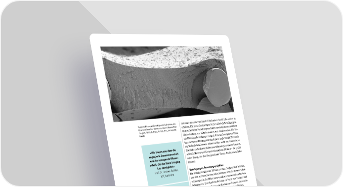 Rasterelektronenmikroskopische Aufnahme des Querschnitts einer Membran, die als Wasserfilter fungiert. (Bild. S. Erpel, NI Lab, SNI, Universität Basel) nationale und internationale Sichtbarkeit des NI Labs weiter zu erhöhen. Ein zentrales Anliegen ist ihm dabei die Beteiligung an anspruchsvollen Forschungsvorhaben sowie die kontinuierliche Weiterbildung von Mitarbeitenden und Studierenden. Ein Bei- spiel für diese Bemühungen zeigt sich im neu konzipierten Block- kurs «Structural Biology and Biophysics» im Jahr 2025. Über sech- zig Biologie-Studierende erhielten hier nicht nur theoretische Einblicke in die Rasterelektronenmikroskopie, sondern konnten selbst Zellkerne und Kernporenkomplexe abbilden – ein prakti- scher Bezug, der das übergeordnete Thema des Kurses sichtbar machte. Beteiligung an Forschungsprojekten Die Mitarbeitenden des NI Labs nutzten das Jahr 2025 intensiv, um sich auf verschiedenen Konferenzen über die neuesten Ent- wicklungen in der Elektronen- und Rastersondenmikroskopie zu informieren. Durch aktive Beiträge in Form von Postern und Vorträgen gelang es ihnen, neue Kontakte zu knüpfen, die bereits zu vielversprechenden Forschungskooperationen führten. So nutzte das Team beispielsweise die Teilnahme an der Mi- croscopy Conference 2025 Dreiländertagung in Karlsruhe, um die Gruppe von Prof. Dr. Andrea Schäfer vom Institute for Ad- vanced Membrane Technology am KIT in Karlsruhe zu besuchen, mit der eine interessante Zusammenarbeit besteht. In dem Pro- jekt untersucht die NI Lab Mitarbeiterin Susanne Erpel Membra- nen von Nanowasserfiltern. Dabei sind es Analysen mittels Ener- giedispersiver Röntgenspektroskopie (EDX) und Schnitte durch die Membranen, die den Forschenden dabei helfen, leistungsfä- hige Wasserfilter für ganz unterschiedliche Anwendungen zu entwickeln. Eine weitere fruchtbare Kooperation entstand mit der Tech- nical University of Denmark (DTU) in Kopenhagen, nachdem Marcus Wyss bei einem Nanotechnologie-Seminar in Kopenha- gen die Vielfältigkeit der Projekte des NI Labs vorgestellt hatte. Bei dem Projekt in Zusammenarbeit mit Dr. Dennis Valbjørn Christensen und Dr. Mohamad Koshkalam (beide vom Depart- ment of Energy Conversion and Storage an der DTU) geht es darum, Batterien aus einer neuen Perspektive zu betrachten und Degenerationsmechanismen besser zu verstehen. Das NI Lab «Die hervorragende Zusammenarbeit mit dem Nano Imaging Lab und dem Startup Qnami war entschei dend für die Aufklärung von Degradationsmechanismen in Energiespeichern der nächsten Generation, indem funktionelle, strukturelle und chemische Bildgebung im Nanobereich miteinander in Zusammenhang gebracht wurden.» Dr. Dennis Valbjørn Christensen, DTU, Kopenhagen «Wir freuen uns über die engagierte Zusammenarbeit und hervorragende Wissen schaft, die das Nano Imaging Lab ermöglicht.» Prof. Dr. Andrea Schäfer, KIT, Karlsruhe 54 SNI-Jahresbericht 2025