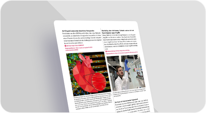 Ein Toxin mit überraschender Eigenschaft Forschende aus dem SNI-Netzwerk haben eine neue Methode entwickelt, um bei neutralem pH-Wert Lipidvesikel zu fusionie- ren. Durch die Verwendung eines Teils des Diphterie-Toxins er- reichen sie, dass die Membranen der Vesikel ohne Vorbehandlung oder raue Bedingungen verschmelzen. Die Arbeit, die in «Com- munications Chemistry» publiziert wurde, legt einen Grundstein für zahlreiche Anwendungen wie Lab-on-a-Chip-Technologien, Biosensoren oder künstliche Zellprototypen. Medienmitteilung mit Video: https://bit.ly/4t7uLF0 Originalpublikation: https://www.nature.com/articles/s42004 025 01738 1 Der SNI-Doktorand Piotr Ja ś ko erzählt im Interview, wie er einen Teil des Diphtherietoxins nutzt, um Vesikel auf kontrollierte und schonende Weise zu verschmelzen. Auf Origami basierendes künstliches Herzgewebe Forschende aus dem SNI-Netzwerk haben eine neue Methode entwickelt, um künstliches Herzgewebe herzustellen. In Form eines Pflasters könnte das mehrschichtige Gewebe beispiels- weise bei einem Herzinfarkt den Heilungsprozess des abgestor- benen Gewebes unterstützen. SNI Post: https://bit.ly/49MNGNP Originalpublikation: https://pubs.acs.org/doi/10.1021/ acsbiomaterials.4c01594 Forschende haben ein mehrschichtiges, funktionelles künstliches Herzgewe- be gezüchtet. Sie haben dazu ein Papiergerüst aus Cellulose mit einer Mikro- und Makrostruktur versehen. Anhand der Mikrostruktur richteten sich die Herzmuskelzellen aus (rechte Seite Hintergrund). Durch die Makrostruktur kam es zu einer Faltung des Gewebes (Herzmodell in der Mitte). Insgesamt konnten die Forschenden die Kontraktionsfähigkeit des Gewebes erheblich verbessern. (Bild: FHNW und Universität Basel, CC BY-NC-ND 4.0) Beschädigt, aber nicht besiegt: Bakterien wehren sich mit Nano Harpunen gegen Angriffe Einige Bakterien verwenden winzige Harpunen, um sich gegen Angriffe von Rivalen zu wehren. Forschende der Universität Basel haben Bakterien mit einer «Mini-Nadel» gestochen und so einen Angriff simuliert. Auf diese Weise konnten sie zeigen, dass die Bakterien ihre Nano-Waffe erst dann zusammenbauen und abfeuern, wenn ihre Zellhülle bei einem Angriff beschädigt wird. Medienmitteilung mit Video: https://bit.ly/4t7AZVo Originalpublikation: https://www.science.org/doi/10.1126/sciadv.adr1713 Der SNI-Doktorand Mitchell Brüderlin hat mit der Spitze eines Rasterkraftmi- kroskops den Angriff auf Bakterien simuliert und die Reaktion darauf in Echt- zeit beobachtet. 25 SNIJahresbericht 2025
