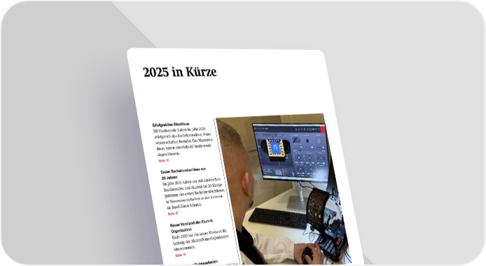 Mit neuen Geräten erweitern die Teams des Nano Technology Centers ihr Ange bot an möglichen Anwendungen – hier mit einem neuen 3D Mikros kop im Nano Fabrication Lab. 2025 in Kürze Erfolgreicher Abschluss Elf Studierende haben im Jahr 2025 erfolgreich das Bachelorstudium Nano- wissenschaften beendet. Das Masterstu- dium haben ebenfalls elf Studierende abgeschlossen. Seite 12 Erster Bachelorabschluss vor 20 Jahren Im Jahr 2025 haben wir mit zahlreichen Studierenden und Alumni das 20-jährige Jubiläum des ersten Bachelor-Abschlusses in Nanowissenschaften an der Universi- tät Basel feiern können. Seite 13 Neuer Vorstand der Alumni Organisation Ende 2025 hat ein neuer Vorstand die Leitung der AlumniNano-Organisation übernommen. Seite 15 Vielfältige Doktorarbeiten Neun SNI-Doktorierende haben 2025 ihre Doktorarbeiten abgeschlossen. Sie haben dazu an den Departementen Biozentrum, Chemie und Physik der Universität Basel, am Paul Scherrer Institut PSI und an der Hochschule für Life Sciences FHNW ge- forscht. Seite 16 Weg zur Firmengründung Auch im Jahr 2025 war der Workshop «From Lab to Startup» ein grosser Erfolg. Die Doktorierenden lernten im Rahmen des Kurses wie sie ihre eigene Geschäfts- idee erfolgreich Investoren präsentieren können. Seite 21 Unterstützendes Netzwerk Die Doktorierenden der SNI-Doktoran- denschule schätzen die unterstützende, internationale und interdisziplinäre Ge- meinschaft am SNI. Seite 20 Dienstleistungen und eigene Forschung Das Nano Technology Center mit seinen beiden Einheiten Nano Imaging Lab und Nano Fabrication Lab steht dem SNI- Netzwerk für Dienstleistungen im Bereich Nanoimaging und Nanofabrikation zur Verfügung. Im Jahr 2025 konnten die beiden Teams ihre Ausstattung erweitern und wesentlich zu zahlreichen, vielfältigen Forschungsprojekten beitragen. Seite 52 Netzwerkveranstaltungen mit hohem Stellenwert Um den Austausch im interdisziplinären Netzwerk mit Forschen- den von verschiedenen akademischen Institutionen in der Nord- westschweiz zu gewährleisten, organisierte das SNI verschie- dene Veranstaltungen wie das Annual Meeting und den NanoTec Apéro. Seite 63 4 SNIJahresbericht 2025