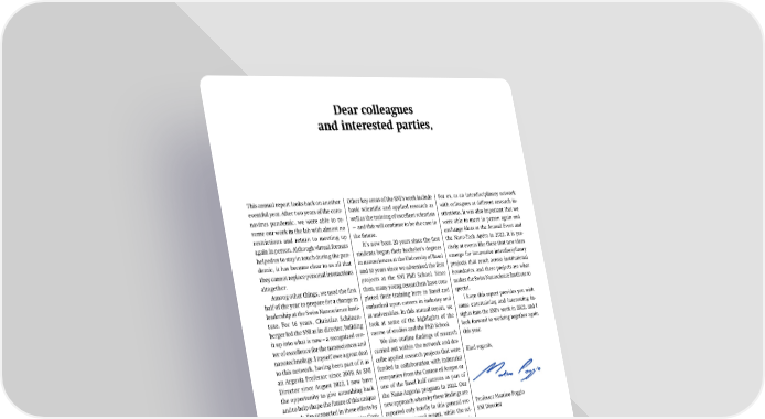Dear colleagues and interested parties, This annual report looks back on another Other key areas of the SNI’s work include For us, as an interdisciplinary network eventful year. After two years of the coro- basic scientific and applied research as with colleagues at different research in- navirus pandemic, we were able to re- well as the training of excellent scientists stitutions, it was also important that we sume our work in the lab with almost no — and this will continue to be the case in were able to meet in person again and restrictions and return to meeting up the future. exchange ideas at the Annual Event and again in person. Although virtual formats It’s now been 20 years since the first the Nano-Tech Apéro in 2022. It is pre- helped us to stay in touch during the pan- students began their bachelor’s degrees cisely at events like these that new ideas demic, it has become clear to us all that in nanosciences at the University of Basel emerge for innovative interdisciplinary they cannot replace personal interactions and 10 years since we advertised the first projects that reach across institutional altogether. projects at the SNI PhD School. Since boundaries, and these projects are what Among other things, we used the first then, many young researchers have com- makes the Swiss Nanoscience Institute so half of the year to prepare for a change in pleted their training here in Basel and special. leadership at the Swiss Nanoscience Insti- embarked upon careers in industry and I hope this report provides you with tute. For 16 years, Christian Schönen- at universities. In this annual report, we some entertaining and interesting in- berger led the SNI as its director, building look at some of the highlights of the sights into the SNI’s work in 2022, and I it up into what is now – a recognized cen- course of studies and the PhD School. look forward to working together again ter of excellence for the nanosciences and We also outline findings of research this year. nanotechnology. I myself owe a great deal carried out within the network and des- to this network, having been part of it as cribe applied research projects that were Kind regards, an Argovia Professor since 2009. As SNI funded in collaboration with industrial Director since August 2022, I now have companies from the Canton of Aargau or the opportunity to give something back one of the Basel half cantons as part of and to help shape the future of this unique the Nano-Argovia program in 2022. Our network. I’m supported in these efforts by new approach whereby these findings are the newly constituted SNI Executive Com- reported only briefly in this general sec- Professor Martino Poggio mittee, whose members represent the tion of the annual report, while the sci- SNI Director SNI’s network partners, as well as the par- entific supplement explores them in ticipating departments at the University greater depth, has proven successful. of Basel, and have also assumed leader- In the second half of 2022 especially, ship of areas such as the Nano-Argovia numerous events served as an opportu- program, the nanoscience curriculum and nity for the SNI team to attract public in- the newly founded Nano Technology Cen- terest in the nanosciences, the SNI in gen- ter. Together, we will continue to expand eral and the nanosciences degree course the SNI and ensure it is well equipped for at the University of Basel. In this regard, a future in which nanotechnologies are I would particularly like to highlight our set to play an increasingly key role. excellent collaboration with Museum In 2022, we took an important step in Burghalde in Lenzburg, which allows us this direction by founding the Nano Tech- to inform broad sections of the general nology Center, which includes the al- public about the Canton of Aargau’s com- ready established Nano Imaging Lab and mitment to the nanosciences. Another the newly founded Nano Fabrication Lab. highlight of our outreach work in 2022 The staff of these two service units offer was the SNI’s attendance at the Rüe- valuable services to customers from aca- blimärt in Aarau, where we were able to demia and industry, as well as making give the many keen visitors there insights valuable contributions to various lines of into the rich possibilities that the nano- research. sciences offer. SNI Annual Report 2022 3