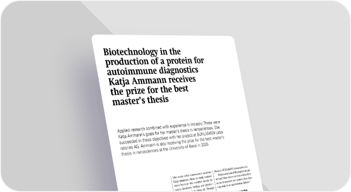 Like many other nanoscience students, Katja Ammann chose to study nanosci- ences because she couldn’t decide be- tween chemistry, biology and physics – she wanted to study them all. Through the block courses she attended and her two projects, she ultimately found that she was particularly interested in applied pharmaceutical research. For her mas- ter’s thesis, the young researcher from Thurgau also wanted to gain experience in industry — not only because it was im- portant to her to make a positive contri- bution to society but also to improve her chances on the job market after complet- ing her studies. “It was thanks to our program coordi- nator, Dr. Anja Car, that I came to work at BÜHLMANN Laboratories AG,” explains Ammann. “Anja was in touch with Dr. Mi- chael Gerspach, who had studied nano- sciences several years ago. Gerspach now leads the Specialty Products Development group at BÜHLMANN Laboratories AG and regularly lectures on applied nanotech- nology in industry here in Basel. He also made sure that I could do my master’s Biotechnology in the production of a protein for autoimmune diagnostics Katja Ammann receives the prize for the best master’s thesis Applied research combined with experience in industry: These were Katja Ammann’s goals for her master’s thesis in nanosciences. She succeeded in these objectives with her project at BÜHLMANN Labo- ratories AG. Ammann is also receiving the prize for the best master’s thesis in nanosciences at the University of Basel in 2025. Katja Ammann completed her master’s thesis at BÜHLMANN Laboratories AG. thesis at BÜHLMANN Laboratories AG. From a selection of the projects he pre- sented, I then chose one that would allow me to do research on a protein that plays a key role in an autoimmune disease.” Sustainable protein production In the autoimmune disease in question, the body’s immune response is targeted directly at the protein. Medical laborato- ries can already detect the disease using an “ELISA” test, in which the protein is attached to a microtiter plate and patient serum is added to it. If the serum contains antibodies against the protein, these will bind to the attached protein and can therefore be detected. Until now, the re- quired protein has been isolated from human tissue. “It would be more sustain- able, however, if we could produce the protein using bacterial or cell cultures with the help of recombinant protein ex- pression,” says Ammann. “And that was precisely what my work sought to do.” Amman began by processing and ma- nipulating the genetic template for the protein at the DNA level so that it could 4 SNI INSight June 2025