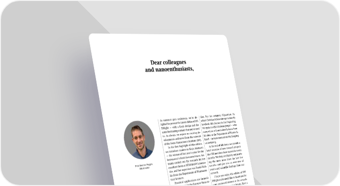 Dear colleagues and nanoenthusiasts, As summer gets underway, we’re de- lighted to present the latest edition of SNI INSight — with a fresh design and the same fascinating content that you’re used to. As always, we report on exciting de- velopments and news from the network of the Swiss Nanoscience Institute (SNI). In the first highlight of this edition, we introduce readers to Katja Ammann — the winner of last year’s prize for the best master’s thesis in nanosciences. Am- mann carried out the research for her excellent thesis at BÜHLMANN Laborato- ries, and her supervisor was Daniel Rick- lin from the Department of Pharmaceu- tical Sciences. Practical applications are immedi- ately apparent in the five new Nano-Ar- govia projects that the SNI has sup- ported since the start of this year. We take a concise look at these projects, in which researchers from our network collaborate with industry partners to deliver concrete solutions — demon- strating the added value of such collab- orations for participating companies. Projects on the road to practical ap- plications also include start-ups that have emerged from the SNI network. One well-established example is ELDICO Scientific, whose electron diffractometer supports researchers with the structural elucidation of chemical compounds — including the group led by Christof Sparr from the Department of Chemistry of the University of Basel, as reported in this edi- tion. For the company YQuantum, in which Christian Schönenberger is directly involved, this journey is just beginning. We spoke to CEO Christian Jünger — who many of you will undoubtedly know from his time at the Department of Physics in Basel — to learn more about this fledgling undertaking. At the end of this issue, we provide a brief overview of new research projects that SNI members have started in recent months. We then conclude by summariz- ing the main news from the last few months and give you an overview of events and scientific findings from our network. I hope you enjoy this edition of SNI INSight and I would like to thank you for your continued interest in the remark- able world of the nanosciences. Have a great summer! Kind regards, Prof. Martino Poggio, SNI director 3 SNI INSight June 2025