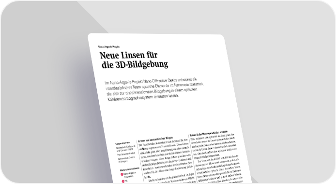 Neue Linsen für die 3D-Bildgebung Im Nano-Argovia-Projekt Nano Diffractive Optics entwickelt ein interdisziplinäres Team optische Elemente im Nanometermassstab, die sich zur dreidimensionalen Bildgebung in einem optischen Kohärenztomographiesystem einsetzen lassen. Linsen aus konzentrischen Ringen Die Forschenden fokussieren sich dabei auf die Her- stellung sogenannter Fraxiconlinsen. Diese Linsen sind nicht glatt oder kugelförmig wie eine normale Linse, sondern bestehen aus vielen dünnen, konzen- trischen Ringen. Diese Ringe haben gezackte oder stufenförmige Strukturen, die Licht – in diesem Fall Laserlicht – in einen schmalen Strahl ablenken (Bes- sel-Strahl), der über eine lange Entfernung gleich- bleibt. Die Forschenden um Projektleiter Prof. Dr. Bojan Resan (Fachhochschule Nordwestschweiz FHNW, Hochschule für Technik und Umwelt) planen in dem für zwei Jahre angelegten Projekt Fraxiconlinsen mit einer scharfen Spitze im Submikrometerbereich mit- hilfe von direkter Laserstrukturierung herzustellen. Potenzial der Massenproduktion ermitteln Dazu analysiert und optimiert das Team jeden Pro- zessschritt, sodass die Linsen später in hohen Stück- zahlen produziert werden können. Die Forschenden testen die Linsen dann in einem kürzlich entwickel- ten, ultrahochauflösenden optischen Kohärenzto- mografie-Bildgebungssystem. Das Team von der FHNW, vom PSI und dem In- dustriepartner XRnanotech untersucht zudem wie sich mittels verschiedener Lithografiemethoden un- terschiedliche optische Gitter herstellen lassen. Diese Gitter müssen eine grosse Zahl von Linien pro Millimeter besitzen und je nach Aufbau Infrarot- strahlen oder UV-Strahlen ablenken. Sie sind bereits etabliert, die heute angewandten Herstellungsme- thoden sind jedoch schwierig, aufwändig und nicht flexibel. Im Projekt Nano Diffractive Optics wollen die Forschenden das Potenzial für eine Massenpro- duktion durch direktes Schreiben oder Nanoimprin- ting ausloten. Kooperation von: Hochschule für Technik und Umwelt FHNW Paul Scherrer Institut XRnanotech GmbH (Villingen) Weitere Informationen: Nano-Argovia- Programm PSI FHNW XRnanotech «Wir sind stolz darauf, am Nano-Argovia- Programm teilnehmen zu können. Das Projekt wird die Forschung und Entwicklung sowie das Produktprototy- ping erheblich beschleunigen und XRnanotech in die Lage versetzen, inner- halb des nächsten Jahres neue Märkte zu erschliessen.» Dr. Gérard Perren, XRnanotech AG Nano-Argovia-Projekt 8 SNI INSight Juni 2025