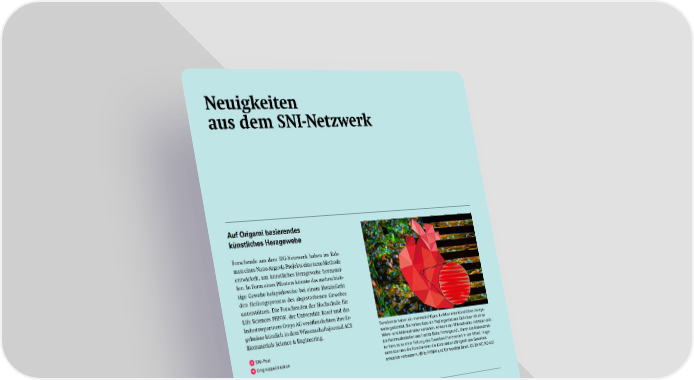 Neuigkeiten aus dem SNI-Netzwerk Beschädigt, aber nicht besiegt Bakterien wehren sich mit Nano- Harpunen gegen Angriffe Einige Bakterien verwenden winzige Harpunen, um sich gegen Angriffe von Rivalen zu wehren. For- schende der Universität Basel haben Bakterien mit- hilfe eines AFM angestochen und so einen Angriff simuliert. Auf diese Weise konnten sie zeigen, dass die Bakterien ihre Nano-Waffe erst dann zusammen- bauen und abfeuern, wenn ihre Zellhülle bei einem Angriff beschädigt wird. Vor allem Mitchell Brüderlin, Doktorand der SNI- Doktorandenschule, hat diese Arbeiten in den Grup- pen der Professoren Marek Basler und Roderick Lim (Biozentrum, Universität Basel) durchgeführt und war Erstauthor der Publikation in Science Advances. SNI-Post mit Video Originalpublikation Auf Origami basierendes künstliches Herzgewebe Forschende aus dem SNI-Netzwerk haben im Rah- men eines Nano-Argovia-Projekts eine neue Methode entwickelt, um künstliches Herzgewebe herzustel- len. In Form eines Pflasters könnte das mehrschich- tige Gewebe beispielsweise bei einem Herzinfarkt den Heilungsprozess des abgestorbenen Gewebes unterstützen. Die Forschenden der Hochschule für Life Sciences FHNW, der Universität Basel und des Industriepartners Omya AG veröffentlichten ihre Er- gebnisse kürzlich in dem Wissenschaftsjournal ACS Biomaterials Science & Engineering. SNI-Post Originalpublikation Mitchell Brüderlin hat im Rahmen seiner Doktorarbeit an der SNI-Doktoran- denschule untersucht, wie sich Bakterien gegen einen Angriff wehren. Forschende haben ein mehrschichtiges, funktionelles künstliches Herzge- webe gezüchtet. Sie haben dazu ein Papiergerüst aus Cellulose mit einer Mikro- und Makrostruktur versehen. Anhand der Mikrostruktur richteten sich die Herzmuskelzellen aus (rechte Seite Hintergrund). Durch die Makrostruk- tur kam es zu einer Faltung des Gewebes (Herzmodell in der Mitte). Insge- samt konnten die Forschenden die Kontraktionsfähigkeit des Gewebes erheblich verbessern. (Bild: FHNW und Universität Basel, CC BY-NC-ND 4.0) 28 SNI INSight Juni 2025