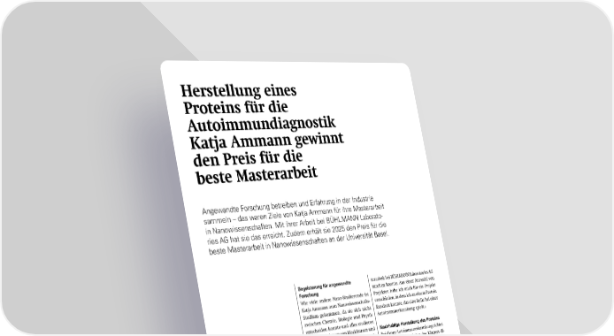 Begeisterung für angewandte Forschung Wie viele andere Nano-Studierende ist Katja Ammann zum Nanowissenschafts- Studium gekommen, da sie sich nicht zwischen Chemie, Biologie und Physik entscheiden konnte und alles studieren wollte. Im Rahmen von Blockkursen und bei ihren beiden Projektarbeiten hat sie sich dann vor allem für die angewandte Pharmaforschung begeistert. Für ihre Masterarbeit wollte die junge Thurgau- erin nun auch Erfahrung in der Industrie sammeln. Zum einen da es ihr wichtig ist, einen positiven Impuls für die Gesell- schaft zu geben, zum anderen um nach dem Studium bessere Chancen auf dem Arbeitsmarkt zu haben. «Dank unserer Studienkoordinatorin Dr. Anja Car bin ich zu BÜHLMANN Labo- ratories AG gekommen», erzählt Katja Ammann. «Anja hatte Kontakt zu Dr. Mi- chael Gerspach, der vor einigen Jahren auch Nanowissenschaften studiert hat, heute die Gruppe Specialty Products De- velopment bei BÜHLMANN Laboratories AG leitet und bei uns in Basel regelmässig eine Vorlesung über angewandte Nano- technologie in der Industrie hält. Er hat sich dafür eingesetzt, dass ich meine Mas- Herstellung eines Proteins für die Autoimmundiagnostik Katja Ammann gewinnt den Preis für die beste Masterarbeit Angewandte Forschung betreiben und Erfahrung in der Industrie sammeln – das waren Ziele von Katja Ammann für ihre Masterarbeit in Nanowissenschaften. Mit ihrer Arbeit bei BÜHLMANN Laborato- ries AG hat sie das erreicht. Zudem erhält sie 2025 den Preis für die beste Masterarbeit in Nanowissenschaften an der Universität Basel. Katja Ammann hat für ihre ausgezeichnete Masterarbeit bei BÜHLMANN Laboratories AG gearbeitet. terarbeit bei BÜHLMANN Laboratories AG machen konnte. Aus einer Auswahl von Projekten habe ich mich für ein Projekt entschieden, in dem ich an einem Protein forschen konnte, das eine Rolle bei einer Autoimmunerkrankung spielt.» Nachhaltige Herstellung des Proteins Bei dieser Autoimmunerkrankung richtet sich die Immunreaktion des Körpers di- rekt gegen das Protein. Es gibt bereits ei- nen sogenannten ELISA-Test, mit dem sich in medizinischen Laboren die Au- toimmunkrankheit nachweisen lässt. Bei dem Test wird das Protein in einer Mikro- titerplatte fixiert und Patientenserum dazugegeben. Enthält das Serum Antikör- per gegen das Protein, binden diese an das fixierte Protein und können so nach- gewiesen werden. Das dafür benötigte Protein wird bisher aus menschlichem Gewebe isoliert. «Es wäre aber nachhalti- ger, wenn wir das Protein mithilfe der sogenannten rekombinanten Proteinex- pression durch Bakterien- oder Zellkultu- ren herstellen könnten», beschreibt Katja. «Und genau das war das Ziel meiner Arbeit.» Katja hat zunächst die genetische Vor- lage des Proteins auf DNA-Ebene so bear- 4 SNI INSight Juni 2025