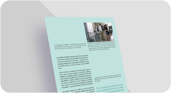 The SNI-sponsored “Wickel昀椀sch” waterproof swim bag was a prized Another item on the agenda was the Enterprise Fair, which offered goody for Basel’s hot summer days and — with its bright red color — has participants an opportunity to make contact with leading industry ex- been spotted in the Rhine repeatedly since the conference. perts from various sectors of the nanosciences. The event served as a bridge between aspiring talents and the organizations shaping the nanosciences of the future. (Image: Tania Beringer) Our culinary o昀昀erings were just as varied as the scientif- ic discussions. From pizza to Mediterranean delicacies, there was something to suit all tastes — and gastronomic highlights included the surprise gelato break from Gelat- eria di Berna and our conference dinner at the Teufelhof hotel. On the lab tours, participants had the chance to get to know various research groups in the 昀椀elds of physics, chemistry and biology from the University of Basel and the University of Applied Sciences Northwestern Switzer- land (FHNW) in Muttenz. There was also an opportunity The organizing team in Basel: Elaine Schneider, Lukas Schneider, Timon for everyone to discover the city of Basel on a Foxtrail Flathmann, Alexa Dani, Luca Forrer, Rahel Kaiser, Mathias Claus and tour, as part of a visit to Museum Tinguely or under their Valerie Bendel. own steam — equipped with their waterproof swim bags. Our motto “Make Nano Visible” was well received by “For the organizing committee, the pro- bachelor’s, master’s and PhD students from across all disciplines, who presented their innovative research cess of planning INASCON over a period projects in fascinating talks and at an informative post- of almost 12 months presented us with er session. The prize for the best poster went to Fabian Scheidler from the University of Würzburg, and the prize repeated hurdles. With some stamina, for the best talk to Amir Nazemi from FHNW Muttenz. creativity and support from the SNI, we These two outstanding contributions were rewarded were able to overcome these hurdles as with cameras from our sponsor Nikon! a team and learned a great deal in the United in diversity process. We’re delighted that INASCON INASCON 2023 brought together brilliant minds from di昀昀erent areas of research, universities and cultures, not 2023 in Basel proved to be an education- only yielding new ideas and opportunities for semesters al and exciting experience for all!” abroad but also opening up potential career pathways and collaborations. With their di昀昀erent origins and goals, all Organizing team of the INASCON 2023 participants played a part in making nano more visible. INASCON 2024: Assembling the Future Further information: We’re now eagerly awaiting the next installment INASCON of INASCON, which will be held at the University of https://inascon.org/ Twente in Enschede, Netherlands. Under the motto “Assembling the Future,” INASCON 2024 promises to be another extraordinary milestone in research and innovation. SNI INSight December 2023 21