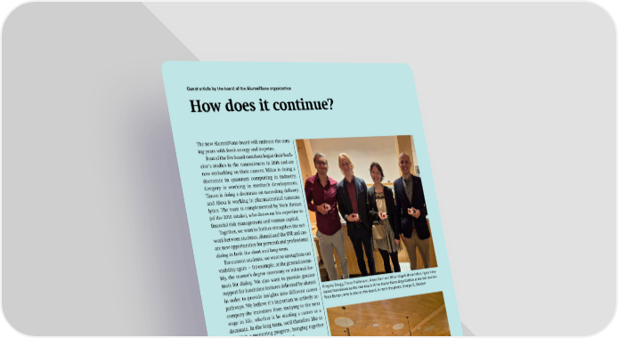 Guest article by the board of the AlumniNano organization How does it continue? The new AlumniNano board will embrace the com- ing years with fresh energy and impetus. Four of the five board members began their bach- elor’s studies in the nanosciences in 2018 and are now embarking on their careers: Milan is doing a doctorate in quantum computing in industry, Gregory is working in medtech development, Timon is doing a doctorate on nano-drug delivery, and Alexa is working in pharmaceutical nanoana- lytics. The team is complemented by Niels Burzan (of the 2010 intake), who draws on his expertise in financial risk management and venture capital. Together, we want to further strengthen the net- work between students, alumni and the SNI and cre- ate new opportunities for personal and professional dialog in both the short and long term. For current students, we want to strengthen our visibility again — for example, at the general assem- bly, the master’s degree ceremony or informal for- mats for dialog. We also want to provide greater support for lunchtime lectures delivered by alumni in order to provide insights into different career pathways. We believe it’s important to actively ac- company the transition from studying to the next stage in life, whether it be starting a career or a doctorate. In the long term, we’d therefore like to establish a mentoring program, bringing together students and enthusiastic alumni. We’re also planning new opportunities for our alumni: additional events, a more active LinkedIn group and targeted initiatives with a view to bring lost members back into the network — because ev- ery nano counts! Another objective is to expand contacts within and outside the nano network. We want to engage in collaborations with other alumni groups in order to expand the range of initiatives as well as devel- oping connections with local companies. This will allow us to relay job vacancies and career opportu- nities to our members in a more targeted manner — and, in the long term, perhaps also to set up joint job fairs or networking events. We look forward to putting these ideas into prac- tice in collaboration with the community — and to many inspiring encounters over the coming year! The board of AlumniNano Gregory Zaugg, Timon Flathmann, Alexa Dani and Milan Liepelt (from left to right) intro- duced themselves as the new board of the AlumniNano Organization at the last reunion. Niels Burzan, who is also on the board, is not in the photo. (Image: S. Stalder) Members of AlumniNano and current students meet several times a year to network and exchange ideas. (Image: S. Stalder) 27 SNI INSight December 2025