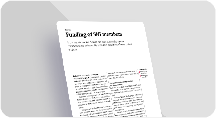 Network Funding of SNI members In the last six months, funding has been awarded to several members of our network. Here is a brief description of some of their projects. Data-based optimization of enzymes Professor Michael Nash (Department of Chemistry, University of Basel and ETH Zurich) has launched a new project in the field of enzyme engineering with a view to the targeted improvement of enzymes — for example, for medical applications. The challenge is to optimize multiple properties — such as activity, stability and specificity — at the same time. Supported for four years by the Swiss National Science Foundation (SNSF), the project combines new experimental and computer-assisted ap- proaches to study enzyme variants more effi- ciently. Using a newly developed method known as en- zyme proximity sequencing, the researchers from Nash’s team will test thousands of enzyme variants in yeast cells simultaneously with a view to identi- fying those that are particularly efficient. Based on the example of the enzyme asparaginase, which plays a key role in cancer therapies, the aim is to demonstrate how enzymes could in the future be improved in more targeted way and based on data rather than trial and error. New approaches to nitrate production and photochemistry In the last round of calls, two ERC Advanced Grants were awarded to two long-term SNI members from the Department of Chemistry of the University of Basel. Professor Thomas Ward’s project will explore completely new approaches to produce nitrogen in a form that is available to plants. Ward wants to de- velop an efficient process for producing this key plant nutrient with lower energy consumption and lower emissions. Nitrogen for agriculture is often produced in the form of ammonia, based on the reduction of N2 to NH3. In his approach, Ward uses an oxidation process instead and plans to produce nitrate — which can Further information: Research group Michael Nash Research group Thomas Ward Michael Nash discusses results with his doctoral student Marco Ernst on the path to improving enzymes. 15 SNI INSight December 2025