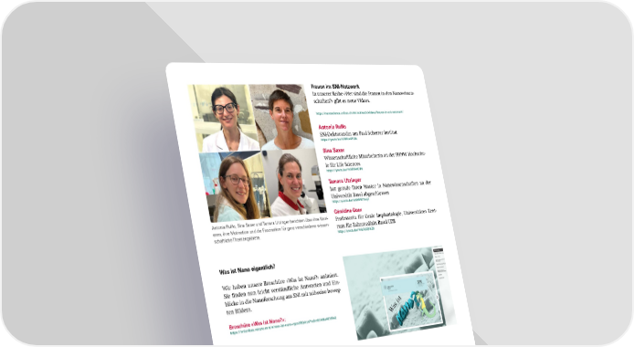 Frauen im SNI-Netzwerk In unserer Reihe «Wer sind die Frauen in den Nanowissen- schaften?» gibt es neue Videos. https://nanoscience.unibas.ch/de/outreach/videos/frauen-im-sni-netzwerk/ Antonia Ruffo SNI-Doktorandin am Paul Scherrer Institut https://youtu.be/V386tx4PLFA Sina Saxer Wissenschaftliche Mitarbeiterin an der FHNW Hochschu- le für Life Sciences https://youtu.be/YzNFfA4CiF8 Tamara Utzinger hat gerade ihren Master in Nanowissenschaften an der Universität Basel abgeschlossen https://youtu.be/5t6SMUYxaj4 Géraldine Guex Antonia Ruffo, Sina Saxer und Tamara Utzinger berichten über ihre Karri- Professorin für Orale Implantologie, Universitäres Zent- eren, ihre Motivation und die Faszination für ganz verschiedene wissen- rum für Zahnmedizin Basel UZB schaftliche Themengebiete. https://youtu.be/4nbXd3jKkZ0 Was ist Nano eigentlich? Wir haben unsere Broschüre «Was ist Nano?» animiert. Sie 昀椀nden nun leicht verständliche Antworten und Ein- blicke in die Nanoforschung am SNI mit teilweise beweg- ten Bildern. Broschüre «Was ist Nano?»: https://sniunibas.relayto.com/e/was-ist-nano-rppx3iftjvkzn?hub=651d6a40795e2 Annual Event 2023 Vom 6.–8. September haben sich die Mitglieder des SNI- Netzwerk zum Annual Event getro昀昀en – zum ersten Mal im Kanton Aargau am Hallwiler See. Es war ein wunderbares Meeting mit spannenden Vorträgen und Postern über grundlagenwissenschaftlche und angewandte Forschung in ganz verschiedenen Berei- chen der Nanowissenschaften und zahlreichen Gelegen- heiten zum Networken und Ideen auszutauschen. Video: https://youtu.be/f4HHrbnXw88 Zum ersten Mal trafen sich die Mitglieder des SNI-Netzwerks am Hallwi- ler See zum Annual Event. SNI INSight — Einblicke in Forschung und Aktitvitäten am Swiss Nanoscience Institute Konzept, Text und Layout: C. Möller, M. Poggio Korrektorat: C. Wirth Bilder: C. Möller und angegebene Quellen © Swiss Nanoscience Institute, Dezember 2023 SNI INSight Dezember 2023 28