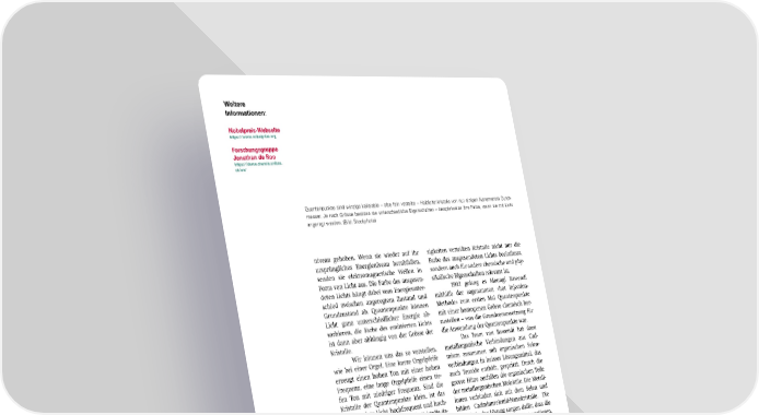 Weitere Informationen: Nobelpreis-Webseite https://www.nobelprize.org Forschungsgruppe Jonathan de Roo https://deroo.chemie.unibas. ch/en/ Quantenpunkte sind winzige kolloidale – also fein verteilte – Halbleiterkristalle von nur einigen Nanometern Durch- messer. Je nach Grösse besitzen sie unterschiedliche Eigenschaften – beispielweise ihre Farbe, wenn sie mit Licht angeregt werden. (Bild: Stockphoto) niveau gehoben. Wenn sie wieder auf ihr sigkeiten verteilten Kristalle nicht nur die ursprüngliches Energieniveau herabfallen, Farbe des ausgesendeten Lichts beein昀氀usst, senden sie elektromagnetische Wellen in sondern auch für andere chemische und phy- Form von Licht aus. Die Farbe des ausgesen- sikalische Eigenschaften relevant ist. deten Lichts hängt dabei vom Energieunter- 1993 gelang es Moungi Bawendi schied zwischen angeregtem Zustand und mithilfe der sogenannten «hot injection- Grundzustand ab. Quantenpunkte können Methode» zum ersten Mal Quantenpunkte Licht ganz unterschiedlicher Energie ab- mit einer homogenen Grösse chemisch her- sorbieren, die Farbe des emittierten Lichts zustellen – was die Grundvoraussetzung für ist dann aber abhängig von der Grösse der die Anwendung der Quantenpunkte war. Kristalle. Das Team von Bawendi hat dazu Wir können uns das so vorstellen, metallorganische Verbindungen aus Cad- wie bei einer Orgel. Eine kurze Orgelpfeife mium zusammen mit organischen Selen- erzeugt einen hohen Ton mit einer hohen verbindungen in heisses Lösungsmittel, das Frequenz, eine lange Orgelpfeife einen tie- auch Tenside enthält, gespritzt. Durch die fen Ton mit niedriger Frequenz. Sind die grosse Hitze zerfallen die organischen Teile Kristalle der Quantenpunkte klein, ist das der metallorganischen Moleküle. Die Metall- ausgesendete Licht hochfrequent und hoch- ionen verbinden sich mit dem Selen und energetisch – also blau. Sind die Kristalle da- bilden Cadmiunselenid-Nanokristalle. Die gegen gross, besitzt das ausgesendete Licht Tenside in der Lösung sorgen dafür, dass die eine niedrigere Frequenz, damit eine grösse- Kristalle fein verteilt dispergiert vorliegen. re Wellenlänge und ist dann rot. Wenn die Temperaturen weiterhin hoch sind (zwischen 240 und 360°C) und genügend Aus- gangsmaterial zur Verfügung steht, wachsen SNI INSight: Was haben die drei Nobel- die Kristalle weiter. Bawendi hat allerdings preisträger genau untersucht? zwischendurch immer wieder Proben ent- nommen und darin den Kristallisations- Jonathan de Roo: Alexei Ekimov hat zu Be- prozess gestoppt. So hat er eine Reihe von ginn der 1980er Jahre Gläser untersucht, die Flüssigkeiten bekommen, die dann jeweils fein verteilte Kupferchlorid-Nanokristalle Quantenpunkte einer bestimmten Grösse enthielten. Er konnte zeigen, dass sich je enthielten. nach Grösse der Kupferchlorid-Kristalle die Farbe der Gläser änderte und dass dies auf Quantene昀昀ekte zurückzuführen ist. Die Grö- SNI INSight: Diese erste chemische sse der Partikel steuerte er zu einem gewis- Synthese homogener Quantenpunkte sen Masse, indem er das Glas unterschiedlich wurde vor 30 Jahren vorgestellt. Welche erhitzte und abkühlte. Fortschritte hat die Forschung inzwischen Louis Brus untersuchte dann ein erzielt? paar Jahre später Quantenpunkte aus Cad- miumsul昀椀d zum ersten Mal in Flüssigkeiten. Jonathan de Roo: Die Nobelpreisträger ha- Er zeigte, dass die Grösse der frei in Flüs- ben damals mit hochtoxischen Verbindun- SNI INSight Dezember 2023 5