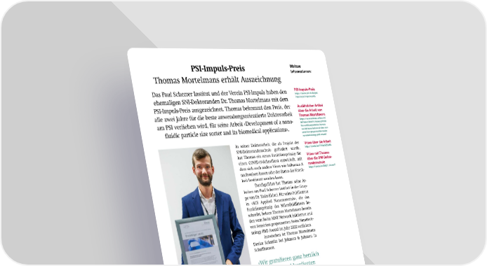 PSI-Impuls-Preis Weitere Informationen: Thomas Mortelmans erhält Auszeichnung Das Paul Scherrer Institut und der Verein PSI-Impuls haben den PSI-Impuls-Preis https://www.psi.ch/de/psi- ehemaligen SNI-Doktoranden Dr. Thomas Mortelmans mit dem impuls/psi-impuls-preis PSI-Impuls-Preis ausgezeichnet. Thomas bekommt den Preis, der Ausführlicher Artikel alle zwei Jahre für die beste anwendungsorientierte Doktorarbeit über die Arbeit von Thomas Mortelmans am PSI verliehen wird, für seine Arbeit «Development of a nano- https://nanoscience.unibas.ch/ de/news/details/neues-prinzip- fuer-antikoerpertests-thomas- 昀氀uidic particle size sorter and its biomedical applications». mortelmans-bekommt-den-von- sensirion-gesponsorten-swiss- nanotechnology-phd-award/ In seiner Doktorarbeit, die als Projekt der Video über die Arbeit SNI-Doktorandenschule gefördert wurde, https://youtu.be/7VKskNZCoMc hat Thomas ein neues Funktionsprinzip für Video mit Thomas einen COVID-19-Schnelltest entwickelt, mit über die SNI-Dokto- dem sich auch andere Viren wie In昀氀uenza A randenschule nachweisen lassen oder der Status der Krank- https://youtu.be/9dqX_vimmcY heit bestimmt werden kann. Durchgeführt hat Thomas seine Ar- beiten am Paul Scherrer Institut in der Grup- pe von Dr. Yasin Ekinci. Für seine Publikation in «ACS Applied Nanomaterials», die das Funktionsprinzip des Mikro昀氀uidiktests be- schreibt, bekam Thomas Mortelmans bereits den vom Swiss MNT Network initiierten und von Sensirion gesponsorten Swiss Nanotech- nology PhD Award im Jahr 2022 verliehen. Inzwischen ist Thomas Mortelmans Device Scientist bei Johnson & Johnson in Scha昀昀hausen. «Wir gratulieren ganz herzlich zu dieser wohlverdienten Thomas Mortelmans hat den PSI-Impuls-Preis verliehen Auszeichnung!» bekommen. (Foto: PSI) SNI-Doktorandenschule SNI-Doktoranden- schule https://nanoscience.unibas.ch/ Bewerbungen noch möglich de/forschung/phd-programm/ Bis zum 31. Dezember 2023 können sich interessierte junge Forschende noch auf die ausgeschriebenen Projekte in der SNI- Doktorandenschule bewerben. Weitere Informationen: https://nanoscience.unibas.ch/de/for- schung/phd-programm/ 8 SNI INSight Dezember 2023
