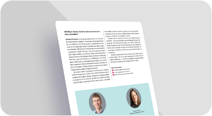 Christoph Bruder ist Professor für Theoretische Physik am Departement Physik der Universität Basel. Seit Gründung des SNI ist er ein aktives Mitglied unseres interdisziplinären Netz- werks und Vertreter des Departements Physik in der Unter- richtskommission für den Studiengang Nanowissenschaften. Nach seiner Promotion an der ETH Zürich und einem Post- doc in den USA beschäftigte sich Christoph Bruder zu Beginn der 90er Jahre am KIT in Karlsruhe intensiv mit Josephson- Kontakten und Quantentransport. Seit 1998 ist er Professor an der Universität Basel und erforscht die theoretischen Grundlagen von Quanteneffekten in mesoskopischen Syste- men – etwa die Kopplung winziger mechanischer Resonato- ren mit Licht oder elektrischem Strom sowie Systeme aus wenigen supraleitenden Qubits. Ziel ist ein besseres Verständ- nis von Transport im Nanobereich, die Entwicklung ultrasen- sitiver Messmethoden, die Erforschung von Sychronisati- onsphänomenen im Quantenbereich sowie Anwendungen des maschinellen Lernens in der Physik. Weitere Informationen: Forschungsgruppe Christoph Bruder Forschungsgruppe Andrea Hofmann Medienmitteilung Nobelpreis Physik 2025 Andrea Hofmann ist Assistenzprofessorin am Departement Physik der Universität Basel und leitet die Forschungsgruppe «Quantum Electronic Devices». Sie studierte und promovierte an der ETH Zürich und war danach im Rahmen eines Marie-Curie-Individual-Fellowships als Postdoc am Institute of Science and Technology Austria (IST Austria). Danach arbeitete sie als Risk Modeller bei Swiss Re in Zürich. Seit Oktober 2021 leitet sie an der Universität Basel ihre eigene Forschungsgruppe, die sich auf Transport- messungen in Halbleiter-Nanostrukturen bei tiefen Tempera- turen spezialisiert hat. SNI INSight: Können Sie Ihre Ansätze noch etwas kon- kreter beschreiben? Andrea Hofmann: Grob gesagt untersuchen wir, wie sich der Tunneleffekt verändert, je nachdem welche Eigenschaft die Tunnelbarriere hat. Etwas präziser ausgedrückt untersu- chen wir die mikroskopischen Zustände, die dafür sorgen, dass einzelne Teilchen-Paare zwischen den zwei Supraleitern ausgetauscht werden können, ohne ihre quantemechani- schen Eigenschaften zu verlieren. Diese mikroskopischen Zustände sind von den Eigenschaften der Barriere abhängig. Wir bauen nun also Barrieren aus Halbleitern wie Germa- nium und können so bestimmte Eigenschaften von Germa- nium ausmessen. Mit diesem Wissen können wir dann wie- derum Verstärker und Quantenbits aus unseren Supraleiter- Germanium-Supraleiter-Kontakten bauen. In einem anderen Experiment versuchen wir, einzelne Teilchen (sogenannte Löcher oder fehlende Elektronen) in Germanium in kleine Käfige, sogenannte Quantenpunkte, einzusperren. Wir wollen die quantenmechanischen Eigen- schaften dieser einzelnen Löcher auszunutzen, um Qubits herzustellen. Auch hier spielen Supraleiter eine wichtige Rolle: wir nutzen sie aus, um sehr sensible Detektoren (Resonatoren) zu bauen, mit denen wir die Qubits auslesen. Darüber hinaus arbeiten wir auch mit Graphen-Doppel- schichten – also etwas wie Blätter aus Kohlenstoff, die nur zwei Atomlage dick sind. Dort erzeugen wir mithilfe elektrischer Felder Quantenpunkte und Tunnelbarrieren. Diese Strukturen bieten eine besonders saubere und vielseitige Plattform, um neue Arten von Qubits und Quantentransportphänomenen zu erforschen. All diese Experimente führen wir bei extrem tiefen Tempe- raturen durch – oft nur wenige tausendstel Grad über dem ab- soluten Nullpunkt – weil die empfindlichen Quanteneffekte sonst durch thermische Bewegung zerstört würden. Christoph Bruder (Bild: Departement Physik, Universität Basel) Andrea Hofmann (Bild: Universität Basel, F. Moritz) 9 SNI INSight Dezember 2025