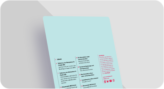 3 Editorial 4 Bedeutung des Nobelpreises für Chemie 2025 Jonathan de Roo im Interview über Metal-Organic Frameworks (MOFs) 7 Bedeutung des Nobelpreises für Physik 2025 Christoph Bruder und Andrea Hof- mann im Interview über Quanten- mechanik in makroskopischen Systemen 10 Wissenschaft trifft Ästhetik Gewinnerbild des Nano Image Awards 2025 12 Mit Licht das kollektive Verhalten von Elektronen untersuchen Portrait über Tomasz Smoleński 15 Förderung von SNI-Mitgliedern 17 Erfolgreiche Verteidigung von Doktorarbeiten 22 Wissenschaft trifft Ästhetik Gewinnerbild des Nano Image Awards 2025 24 20 Jahre seit dem ersten Bachelor-Abschluss Ein guter Grund zurück zu blicken und zu feiern 25 Spannende Karrierewege nach dem Nanostudium Neue Absolventenbroschüre 26 Neue Vorstände im Nano- verein und bei AlumniNano 27 Gastbeitrag AlumniNano-Vorstand Wie geht es weiter? 28 Wissenschaft trifft Ästhetik Gewinnerbild des Nano Image Awards 2025 30 Nano.Neugier Ideen für Experimente und Basteleien 32 Neuigkeiten aus dem SNI-Netzwerk www.nanoscience.ch Follow us on: SNI INSight Zweimal im Jahr informieren wir über Aktivitäten und Resul- tate aus Forschung, Ausbildung, Technologie- und Wissenstrans- fer, Nano Technology Center und Öffentlichkeitsarbeit des Swiss Nanoscience Institutes. Alle vorhergehenden Ausgaben finden Sie auf unserer Webseite unter SNI INSight. 2 SNI INSight Dezember 2025