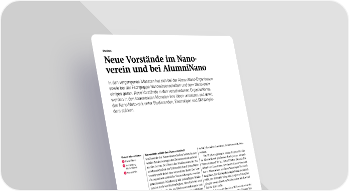Nanoverein stärkt den Zusammenhalt Studierende der Nanowissenschaften heben immer wieder den hervorragenden Zusammenhalt unterei- nander hervor. Der Verein der Studierenden der Na- nowissenschaften der Universität Basel (kurz Nano- verein) spielt dabei eine wesentliche Rolle. Der Ver- ein organisiert zahlreiche Veranstaltungen – von der gemeinsamen Wanderung mit zukünftigen Studie- renden noch vor Studienbeginn, über Raclette- und Bowlingabende bis zu Büchervorstellungen und Lunch Lectures gibt es jedes Semester ein vielfältiges Programm für alle Nanostudierenden. So lernen sich die «Nanos» auch über Semestergrenzen hinweg gut kennen und pflegen den regelmässigen Austausch. Verantwortlich für all diese Aktivitäten ist der Vorstand des Nanovereins. Im November gab es hier einige Änderungen was Verantwortlichkeiten an- geht. Präsidentin: Laurine Haller Vize-Präsident: Niklas Bielefeld Kassiererin: Lea Schärrer Akturarin: Elea Humbel PhD-Vertretung: Elaine Schneider, Rahel Kaiser Master-Vertretung: Meret Benninger, Sarah Stalder Jahrgangs-Vertretung 24 und PR: Aimee Gottee Jahrgangs-Vertretung 25: Sashank Gade Beyza Nur Cölkusu Jimena Lopez Castro AlumniNano hält Kontakte aufrecht Was der Nanoverein im Laufe des Studiums aufge- baut hat, setzt die AlumniNano-Organisation seit vielen Jahren fort: Austausch, Zusammenhalt, Netz- werken. Vor 11 Jahren gründete Tobias Appenzeller die zu AlumniBasel gehörende Fachgruppe Alumni- Nano und stand ihr bis Mitte Oktober 2025 als Prä- sident vor. Zusammen mit einem aktiven Vorstand hat er AlumniNano zu einem lebendigen Netzwerk ausgebaut, das sich regelmässig in Basel und Zürich trifft, alte Kontakte pflegt und jüngeren Nano-Jahr- gängen sowie aktuellen Studierenden mit Rat und Tat zur Seite steht. Im Rahmen der Reunion 2025 wurde nun der alte Vorstand mit Tobias Appenzeller, Etienne Ber- ner, David Bracher, Benjamin Banusch, Michael Ger- spach, Natascha Kappeler und Peter Noy verabschie- det und der neue Vorstand vorgestellt. Milan Liepelt ist der neue Präsident, Alexa Dani und Timon Flathmann unterstützen ihn im Bereich Kommunikation, Gregory Zaugg wird in Zukunft Events organisieren und im Bereich Finanzen ist Niels Burzan im Vorstand mit dabei. Die neue Prä- sidentin des Nanovereins Laurine Haller gehört auch dem erweiterten Vorstand an – ebenso wie zahlreiche Jahrgangsvertreter:innen. Das SNI dankt allen, die sich im Nanoverein oder bei AlumniNano engagieren und dafür sorgen, dass die Nano-Community eine ganz besondere ist. Wir freuen uns auf neue Ideen und Initiativen und die Zusammenarbeit mit den neuen Teams. Neue Vorstände im Nano- verein und bei AlumniNano In den vergangenen Monaten hat sich bei der AlumniNano-Organisation sowie bei der Fachgruppe Nanowissenschaften und dem Nanoverein einiges getan. Neue Vorstände in den verschiedenen Organisationen werden in den kommenden Monaten ihre Ideen umsetzen und damit das Nano-Netzwerk unter Studierenden, Ehemaligen und SNI-Mitglie- dern stärken. Weitere Informationen: AlumniNano Anmeldung AlumniNano Nanoverein 26 SNI INSight Dezember 2025 Studium