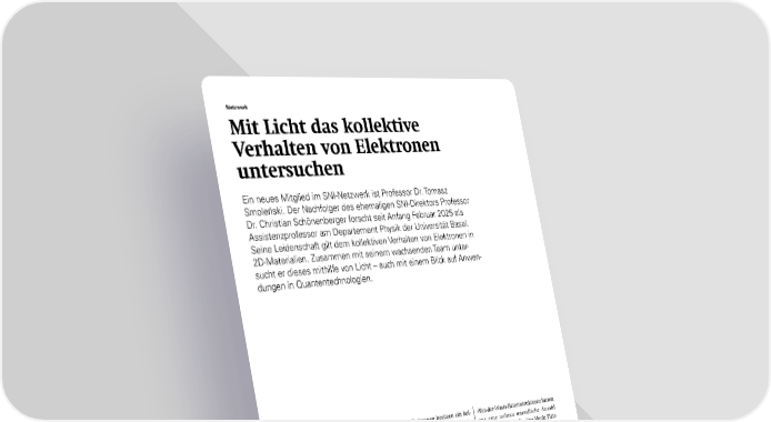 Mit Licht das kollektive Verhalten von Elektronen untersuchen Ein neues Mitglied im SNI-Netzwerk ist Professor Dr. Tomasz Smoleński. Der Nachfolger des ehemaligen SNI-Direktors Professor Dr. Christian Schönenberger forscht seit Anfang Februar 2025 als Assistenzprofessor am Departement Physik der Universität Basel. Seine Leidenschaft gilt dem kollektiven Verhalten von Elektronen in 2D-Materialien. Zusammen mit seinem wachsenden Team unter- sucht er dieses mithilfe von Licht – auch mit einem Blick auf Anwen- dungen in Quantentechnologien. Verhalten von zahlreichen Elektronen Quanten-Opto-Elektronik heisst die Gruppe des neuen Assistenzprofessors Tomasz Smoleński am Departement Phy- sik der Universität Basel, der ab 2026 auch ein Projekt in der SNI-Doktorandenschule betreuen wird. Einfach gesagt untersucht Smoleński mit seinem Team, wie sich eine grosse Anzahl von Elektronen in verschiedenen Phasen und Materialien verhalten. Er ver- gleicht dieses Thema mit einem Vogel- schwarm, der sich in einem komplexen Muster bewegt, das sich von dem eines einzelnen Vogels unterscheidet. «Das komplexe Bewegungsmuster entsteht nicht dadurch, dass jeder Vogel dem ge- samten Schwarm folgt, sondern durch einfache Regeln – jeder Vogel reagiert le- diglich auf das Verhalten seiner Nach- barn. Ein ähnliches Prinzip gilt für Elek- tronen, wenn viele von ihnen zusammen- kommen», erklärt Smoleński. Denn auch Elektronen besitzen ein kol- lektives Verhalten, das sehr komplex sein kann – wie beispielsweise bei einem Sup- raleiter, der Strom verlustfrei leitet. Aller- dings ist dieses kollektive Verhalten oft schwierig vorherzusagen und zu berech- nen. Smoleński untersucht es daher mit- hilfe optischer, nicht-invasiver Methoden. Künstliche Materialien mit neuen Eigenschaften Als Untersuchungsmaterial verwenden Smoleński und sein Team zweidimensio- nale Van-der-Waals-Heterostrukturen. Diese Strukturen bestehen aus Schichten atomar dünner Materialien, die durch schwache Van-der-Waals-Kräfte zusam- mengehalten werden. Diese Eigenschaft ermöglicht es, verschiedene atomare Schichten in komplexen Heterostrukturen zu kombinieren, die völlig neue elektroni- sche Eigenschaften aufweisen können. Netzwerk «Van-der-Waals-Heterostrukturen bieten uns eine nahezu unendliche Anzahl neuer Materialien, die eine ideale Platt- form für unsere Untersuchungen darstel- len», erklärt Smoleński. «Ein einzigarti- ger Vorteil dieser Materialien besteht darin, dass sie es ermöglichen, die An- zahl der Elektronen in situ durch Anle- gen einer Spannung anzupassen, ohne das Material verändern zu müssen.» Diese Abstimmbarkeit der Eigenschaften unterscheidet diese Materialien von an- deren, die in der Quantenwissenschaft verwendet werden, und ist für die For- schenden von grosser Bedeutung. Untersuchungen mit Licht Um die Eigenschaften der Elektronen in den Heterostrukturen zu untersuchen, nutzt Smoleński verschiedene spektros- kopische – also optische – Methoden, die das Material selbst nicht verändern. 12 SNI INSight Dezember 2025
