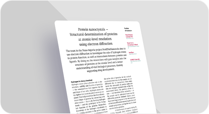 Protein nanocrystals — Further information Structural determination of proteins Paul Scherrer Institute PSI at atomic-level resolution https://www.psi.ch/en using electron di昀昀raction Biozentrum, University of Basel https://www.biozentrum.unibas. The team in the Nano-Argovia project ProtEDinNanoxtals aims to ch use electron di昀昀raction to investigate the role of hydrogen atoms leadXpro in protein function, as well as interactions between proteins and https://leadxpro.com ligands. By doing so, the researchers will gain insights into the ELDICO Scientific structure of proteins at the atomic level and a better https://www.eldico-scientific. understanding of vital biological processes, thereby com supporting drug development. Hydrogen is always involved the active sites of proteins. In this method, Hydrogen atoms play a decisive role in the accelerated electrons hit the sample and are structure, stability and function of proteins di昀昀racted due to interactions with atoms — the nanomachines that organize the life inside the thousands of protein molecules and shape of our cells. Hydrogen atoms are that are arranged symmetrically within the the lightest but most abundant atoms on our nanocrystal lattice. The position of the at- planet. They help to stabilize the three-dimen- oms — and therefore of the molecules — in sional shape of proteins by interacting with the sample can be calculated based on the other atoms — that is, by forming hydrogen di昀昀raction patterns obtained. Recent years bonds — and also participate in the biolog- have seen huge progress in the development ical function of the proteins themselves. of electron di昀昀raction measuring devices and Knowledge of the hydrogen coordinates in sample preparation, paving the way for their the protein structure at the active center is use on various proteins. therefore crucial for the development of new A diverse team of experts led by Dr. active pharmaceutical ingredients, but the Valérie Panneels (Paul Scherrer Institute) limitations of conventional methods mean it will now analyze model proteins of di昀昀erent is di昀케cult for scientists to map the location sizes and functions. These proteins are pho- of hydrogen atoms in proteins. tosensors that are inactive in the dark and for which the resting structure is known. First, Electron diffraction as the method an electron microscope and a horizontal of choice electron di昀昀ractometer will be used to mea- Now, the interdisciplinary team working on sure light-oxygen-voltage-sensing domain 1 the Nano-Argovia project ProtEDinNanoxtals (LOV-1), a small domain responsible for the is planning to use electron di昀昀raction to in- regulation of various functions by light per- vestigate the position of hydrogen atoms at ception in organisms from prokaryotes to “leadXpro is specialized in membrane protein structure-based drug discovery with the help of X-ray crystallography and cryo-EM for the discovery of novel medicines. Electron di昀昀raction could evolve as a vital complementary technology for nanocrystals, as well as for the analysis of hydrogen atoms.” Dr. Michael Hennig, leadXpro 8 SNI INSight June 2024