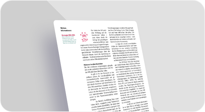 Weitere Forschungsgruppen und dem 2022 gegründe- Informationen Die Arbeit des SNI wird ten Nano Technology Center (Nano Imaging eine Wirkung auf die Lab und Nano Fabrication Lab) geben. Das Strategie 2024-2034 Gesellschaft haben – Portfolio an Kunden und Partnern soll in den https://nanoscience.unibas. zum einen durch die nächsten Jahren ausgebaut werden – auch ch/fileadmin/user_upload/ nanoscience/04_UEber_Uns/Or- Erfolge der grundlagen- durch Kontakte mit anderen nationalen und ganisation/Strategy-Paper_de_ final_28_5_24_interactive.pdf wissenschaftlichen und internationalen Nanozentren. angewandten Forschung zu Fragestellungen, In dem sich schnell entwickelnden bei denen Nanotechnologie Lösungsansätze Gebiet der Nanowissenschaften und Nano- bietet; zum anderen durch die Bereitstellung technologie ist eine moderne Ausstattung spezialisierter Dienstleistungen über das der Forschungsgruppen und Dienstleistungs- Netzwerk hinaus, durch die Ausbildung ex- einheiten elementar. Das SNI wird sich daher zellenter Nachwuchswissenschaftler:innen dafür einsetzen durch eine Infrastruktur auf und durch aktive Ö昀昀entlichkeitsarbeit. dem neuesten Stand der Technik Forschung auf höchstem Niveau zu ermöglichen. Relevanz in allen Bereichen Das SNI-Team wird seine Bemühun- Die vier erwähnten Leitprinzipien spiegeln gen intensivieren, einen e昀昀ektiven Wissens- sich in den geplanten Massnahmen aller für und Technologietransfer zu betreiben – denn das SNI relevanten Bereiche wider. nur wenn wir es scha昀昀en, Anwendungen un- So gilt es für das Netzwerk in den serer Forschungsresultate in Unternehmen nächsten Jahren die interdisziplinäre und zu transferieren, lässt sich das Potenzial der interinstitutionelle Gemeinschaft mit ge- Innovationen ausschöpfen, die in den For- meinsamen Zielen weiter auszubauen, die schungsgruppen des SNI-Netzwerks (CSEM sich durch Exzellenz und Identi昀椀kation mit Allschwil, D-BSSE, FHNW, PSI, ANAXAM, dem SNI auszeichnet. Daneben werden wir Swiss PIC und Universität Basel) entwickelt die Reichweite des Netzwerks vergrössern, wurden. Das Nano-Argovia-Programm, das indem wir den Austausch mit der nationalen bereits seit der Gründung des SNI besteht, und internationalen Wissenschaftsgemein- wird weiterhin fortgeführt, um damit den schaft in den Nanowissenschaften weiter Austausch unter Forschenden aus dem SNI- anregen. Netzwerk und von Industrieunternehmen Im Bereich Ausbildung liegt unser aus der Nordwestschweiz zu fördern und ge- Fokus darin, engagierte junge Nanowissen- meinsam neue Produkte und Anwendungen schaftler:innen auszubilden, die dank einer zu entwickeln. breiten Wissensbasis bestens geeignet sind, Im Bereich der Ö昀昀entlichkeitsarbeit die komplexen Herausforderungen der Zu- ist es dem SNI ein Anliegen, eine positive kunft zu meistern. Das SNI wird daher das Assoziation mit den Begri昀昀en Nanowissen- Curriculum des Studiengangs Nanowissen- schaft und Nanotechnologie zu generieren. schaften immer wieder anpassen und seine Ziel ist es, auf unterhaltsame Art und Weise Bemühungen intensivieren, Schüler:innen von den Errungenschaften der SNI-Forschen- für den anspruchsvollen Studiengang zu den zu berichten und die Faszination der begeistern. Wir werden das Studium und die Nanowelt zu teilen. Dabei gilt es nicht nur Doktorandenschule attraktiver gestalten, die breite Ö昀昀entlichkeit zu informieren, indem wir die Ausbildung noch stärker mit sondern auch Kinder und Jugendliche für den Forschungs- und Dienstleistungsaktivi- ein Studium einer Naturwissenschaft oder täten des SNI verknüpfen. Wir streben eine der Nanowissenschaften zu begeistern. engere Zusammenarbeit mit AlumniNano an und möchten so dazu beitragen, dass Nano- Studierende Forschungsansätze ausserhalb des Netzwerks kennen lernen und eine bes- sere Übersicht über mögliche Karrierewege erhalten. Den Fokus der Forschungsaktivitäten und Dienstleistungsaktivitäten wird das SNI auf die Bereiche Nanoimaging und Nanofab- rikation legen, um damit Lösungsansätze für gesellschaftliche Herausforderung zu liefern. Dabei wird es in Zukunft eine engere Ver- knüpfung zwischen den unterschiedlichen SNI INSight Juni 2024 5