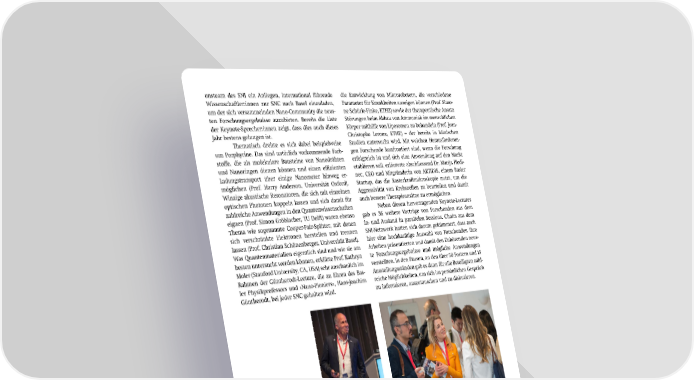 onsteam des SNI ein Anliegen, international führende die Entwicklung von Mikrorobotern, die verschiedene Wissenschaftler:innen zur SNC nach Basel einzuladen, Parameter für Krankheiten anzeigen können (Prof. Simo- um der sich versammelnden Nano-Community die neus- ne Schürle-Finke, ETHZ) sowie der therapeutische Ansatz ten Forschungsergebnisse anzubieten. Bereits die Liste Störungen beim Abbau von Ammoniak im menschlichen der Keynote-Sprecher:innen zeigt, dass dies auch dieses Körper mithilfe von Liposomen zu behandeln (Prof. Jean- Jahr bestens gelungen ist. Christophe Leroux, ETHZ) – der bereits in klinischen Thematisch drehte es sich dabei beispielweise Studien untersucht wird. Mit welchen Herausforderun- um Porphyrine. Das sind natürlich vorkommende Farb- gen Forschende konfrontiert sind, wenn die Forschung sto昀昀e, die als molekulare Bausteine von Nanodrähten erfolgreich ist und sich eine Anwendung auf den Markt und Nanoringen dienen können und einen e昀케zienten etablieren soll, erläuterte abschliessend Dr. Marija Plodi- Ladungstransport über einige Nanometer hinweg er- nec, CEO und Mitgründerin von ARTIDIS, einem Basler möglichen (Prof. Harry Anderson, Universität Oxford). Startup, das die Rasterkraftmikroskopie nutzt, um die Winzige akustische Resonatoren, die sich mit einzelnen Aggressivität von Krebszellen zu beurteilen und damit optischen Photonen koppeln lassen und sich damit für auch bessere Therapieansätze zu ermöglichen. zahlreiche Anwendungen in den Quantenwissenschaften Neben diesen hervorragenden Keynote-Lectures eignen (Prof. Simon Gröblacher, TU Delft) waren ebenso gab es 36 weitere Vorträge von Forschenden aus dem Thema wie sogenannte Cooper-Pair-Splitter, mit denen In- und Ausland in parallelen Sessions. Chairs aus dem sich verschränkte Elektronen herstellen und trennen SNI-Netzwerk hatten sich darum gekümmert, dass auch lassen (Prof. Christian Schönenberger, Universität Basel). hier eine hochkarätige Auswahl von Forschenden ihre Was Quantenmaterialien eigentlich sind und wie sie am Arbeiten präsentierten und damit den Zuhörenden neus- besten untersucht werden können, erklärte Prof. Kathryn te Forschungsergebnisse und mögliche Anwendungen Moler (Stanford University, CA, USA) sehr anschaulich im vorstellten. In den Pausen, an den über 50 Postern und 15 Rahmen der Güntherodt-Lecture, die zu Ehren des Bas- Ausstellungsständen gab es dann für alle Beteiligten zahl- ler Physikprofessors und «Nano-Pioniers», Hans-Joachim reiche Möglichkeiten, um sich im persönlichen Gespräch Güntherodt, bei jeder SNC gehalten wird. zu informieren, auszutauschen und zu diskutieren. Kathryn Moler und Sébastien Lecommandoux gaben mit ihren Keynote Der interdisziplinäre Austausch stand bei der SNC im Vordergrund. (Bild: Lectures spannende Einblicke in ihre Forschungsarbeiten. E. Byrne) «Ich habe es sehr genossen und es war wunderbar, mit der Schweizer Nano/ Quantum-Community in Kontakt zu kommen.» Prof. Dr. Kathryn Moler, Stanford University, CA, USA Weitere Keynote-Vorträge befassten sich mit sich selbst organisierenden Nanovesikeln auf Polymerbasis, die eine Beladung mit pharmazeutischen Wirksto昀昀en Die über 50 Poster boten ebenfalls eine ideale Gelegenheit sich über ermöglichen und der Herstellung von komplexeren, unterschiedliche Forschungsansätze zu informieren und im Rahmen der kompartimentierten künstlichen Zellen (Prof. Sébastien Postersession mit den jeweiligen Forschenden darüber zu diskutieren. Lecommandoux, Universität Bordeaux). Im nanomedizi- nischen Bereich angesiedelt waren die Arbeiten rund um SNI INSight Juni 2024 26