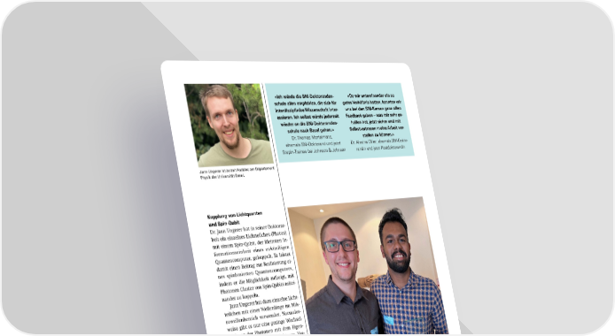 «Ich würde die SNIDoktoranden «Da wir untereinander ein so schule allen empfehlen, die sich für gutes Verhältnis hatten, konnten wir interdisziplinäre Wissenschaft inter uns bei den SNIKursen ganz offen essieren. Ich selbst würde jederzeit Feedback geben – was mir sehr ge wieder an die SNIDoktoranden holfen hat, jetzt sicher und mit schule nach Basel gehen.» Selbstvertrauen meine Arbeit vor Dr. Thomas Mortelmans, stellen zu können.» ehemals SNI-Doktorand und jetzt Dr. Alexina Ollier, ehemals SNI-Dokto- StepIn-Trainee bei Johnson & Johnson randin und jetzt Postdoktorandin Jann Ungerer ist zurzeit Postdoc am Departement Physik der Universität Basel. Kopplung von Lichtquanten und SpinQubit Dr. Jann Ungerer hat in seiner Doktorar- beit ein einzelnes Lichtteilchen (Photon) mit einem Spin-Qubit, der kleinsten In- formationseinheit eines zukünftigen Quantencomputer, gekoppelt. Er leistet damit einen Beitrag zur Realisierung ei- nes spinbasierten Quantencomputers, indem er die Möglichkeit aufzeigt, mit Photonen Cluster von Spin-Qubits mitei- nander zu koppeln. Jann Ungerer hat dazu einzelne Licht- teilchen mit einer Wellenlänge im Mik- rowellenbereich verwendet. Normaler- weise gibt es nur eine geringe Wechsel- wirkung der Photonen mit dem Eigen- drehimpuls (Spin) eines Elektrons. Ver- wenden die Forschenden jedoch einen speziellen supraleitenden Resonator, der einzelne Photonen speichert, wird die Wechselwirkung zwischen Photon und Spin verstärkt. Auf diese Weise ist es dem Forscher gelungen, ein einzelnes Licht- teilchen mit einem Elektron-Spin in ei- nem Doppelquantenpunkt zu koppeln. Quantenpunkte sind winzig kleine Strukturen, in denen die Ladungsträger in ihrer Beweglichkeit eingeschränkt sind, so dass sich einzelne Elektronen ein- fangen und manipulieren lassen. In seiner Arbeit hat Jann Ungerer zur Erzeugung Beim Annual Event des SNI stellen die Doktorierenden ihre der Doppelquantenpunkte einen Nano- Arbeiten dem SNI-Netzwerk vor. Josh Zuber hat dabei den draht aus dem Halbleitermaterial Indium- Preis für den besten Vortrag gewonnen. Ajmal Roshan konnte mit seinem Poster überzeugen. arsenid verwendet, bei dem zwei verschie- dene Kristallstrukturen einen Doppel- quantenpunkt entstehen lassen und die Kopplung zwischen Photon und Spin möglich machen. Publikation: https://bit.ly/3YRdAYh SNI Jahresbericht 2022 19